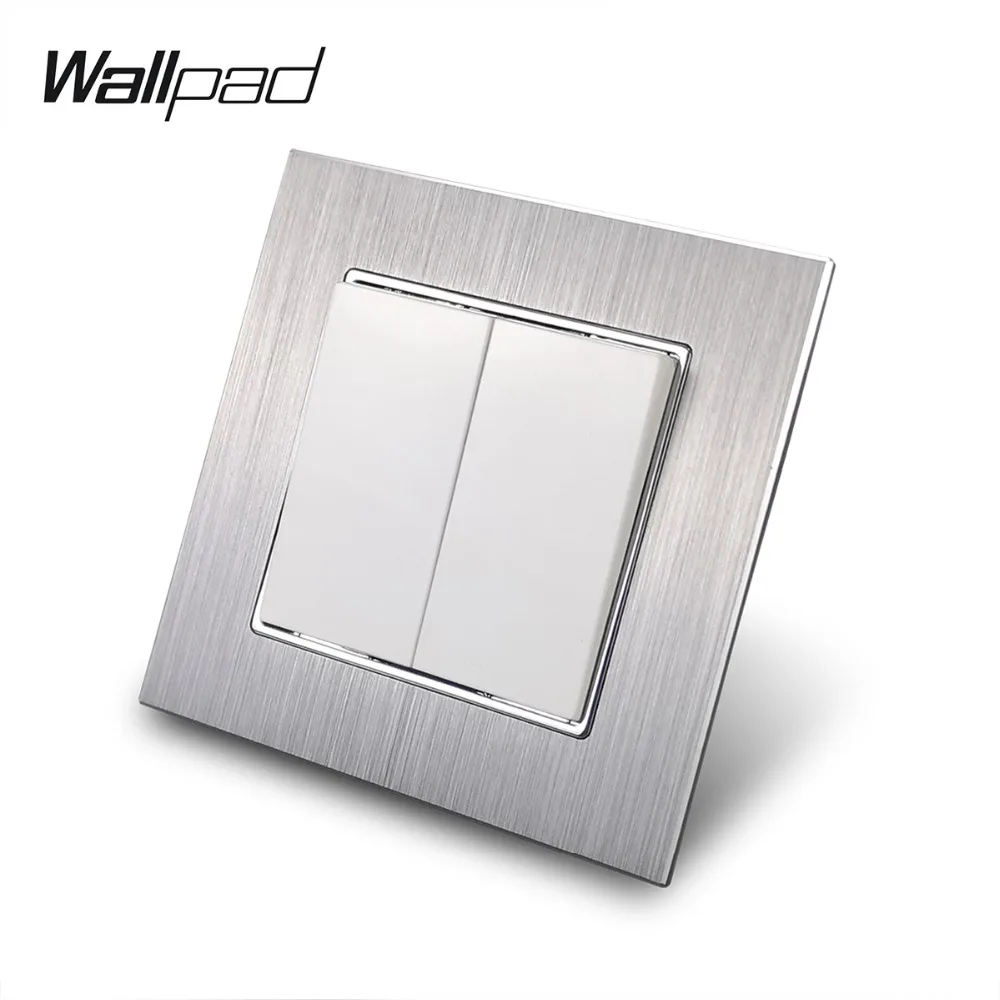 Настенный выключатель Schuko с креплением на стену, европейского стандарта, 2 клавиши, двухсторонний, 10 А переменного тока, серебристый, сатиновый