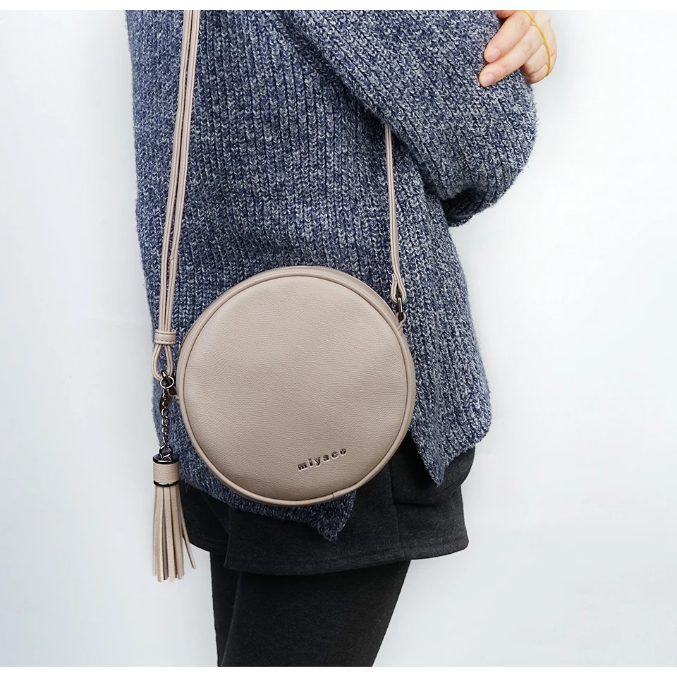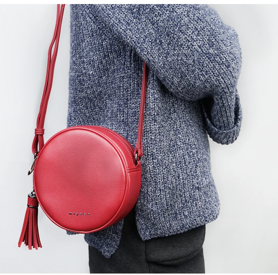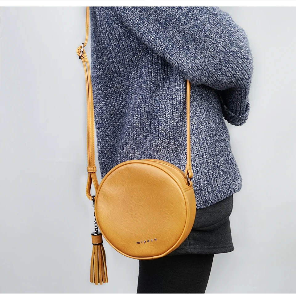 Miyacoмодные сумки через плечо, Женская круглая сумка на ремне, брендовые сумки-мессенджеры, маленькие дамские сумочки через плечо с кисточкой icon star icon star icon star icon star icon star