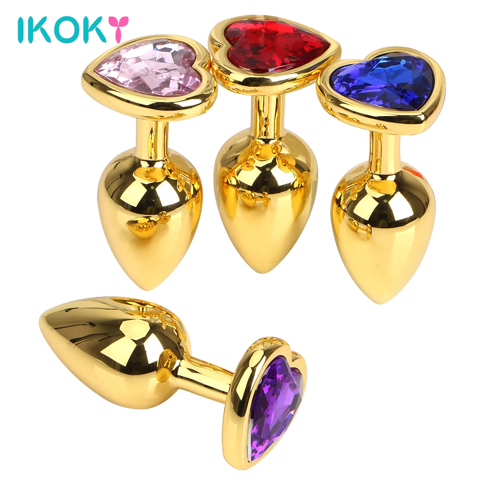 IKOKY золотая металлическая Анальная пробка кристалл, Анальная пробка ювелирные изделия, сердца, форме простаты, массажер секс игрушки для геев мастурбации секс игрушки для мужчин секс игрушки для женщин
