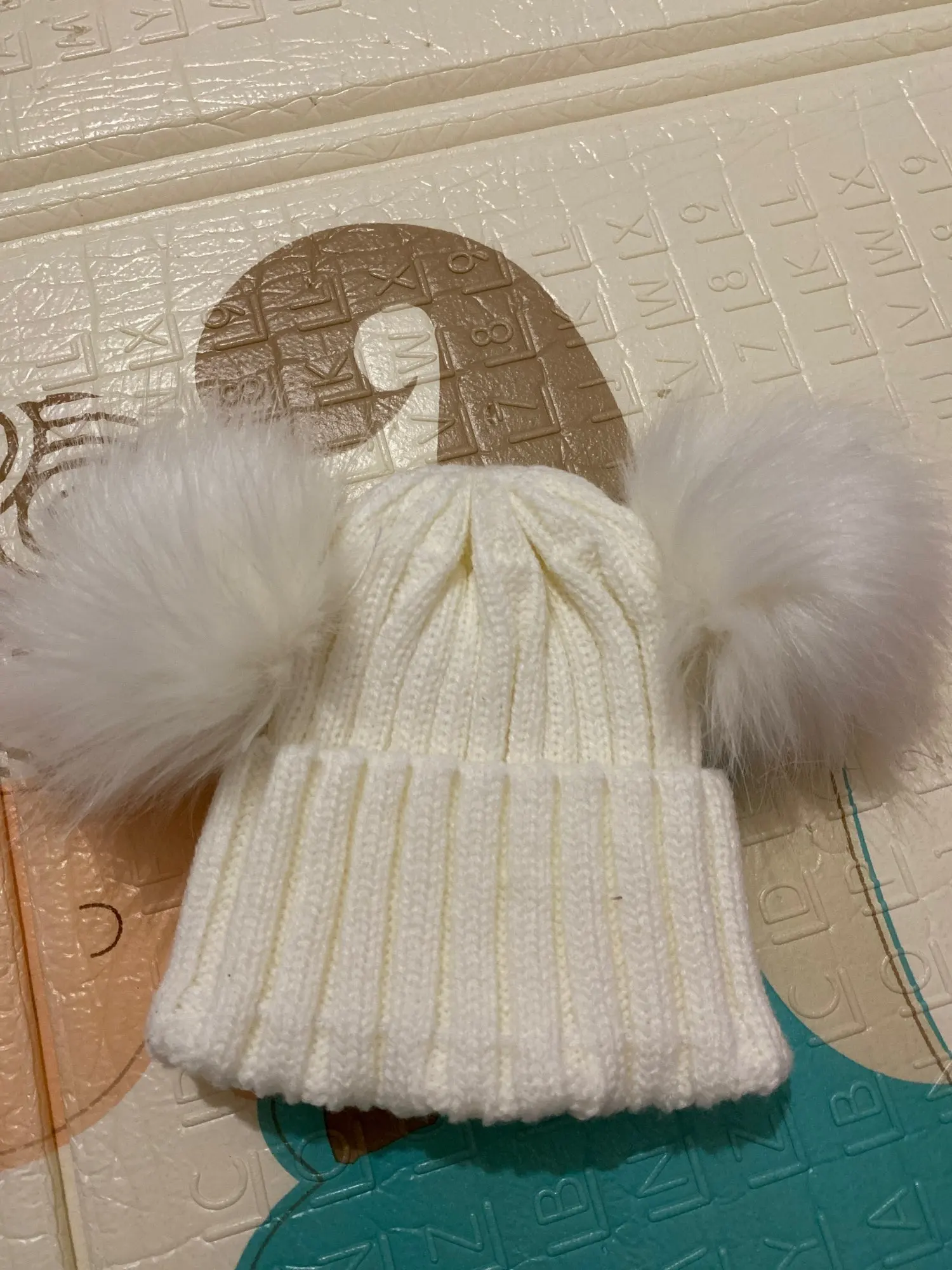 Новинка 2019, брендовая зимняя теплая вязаная шапка для новорожденных детей, девочек и мальчиков, однотонная теплая Милая шапка с пушистыми шариками и помпоном, милые шапки-бини в подарок
