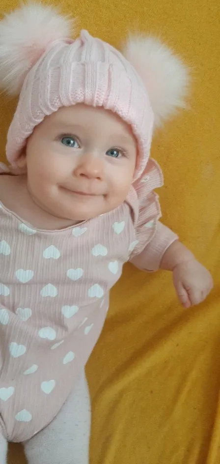 Полностью соответствует описанию. До Питера за 2е недели. Шапка связана аккуратно, без запаха. Пумпоны искусственные, но выглядят очень хорошо, шапочку не портят, пушистенькие. Шапка довольно универсальная, нам 5 мес и то хорошо сидит, запас есть думаю на долго))
