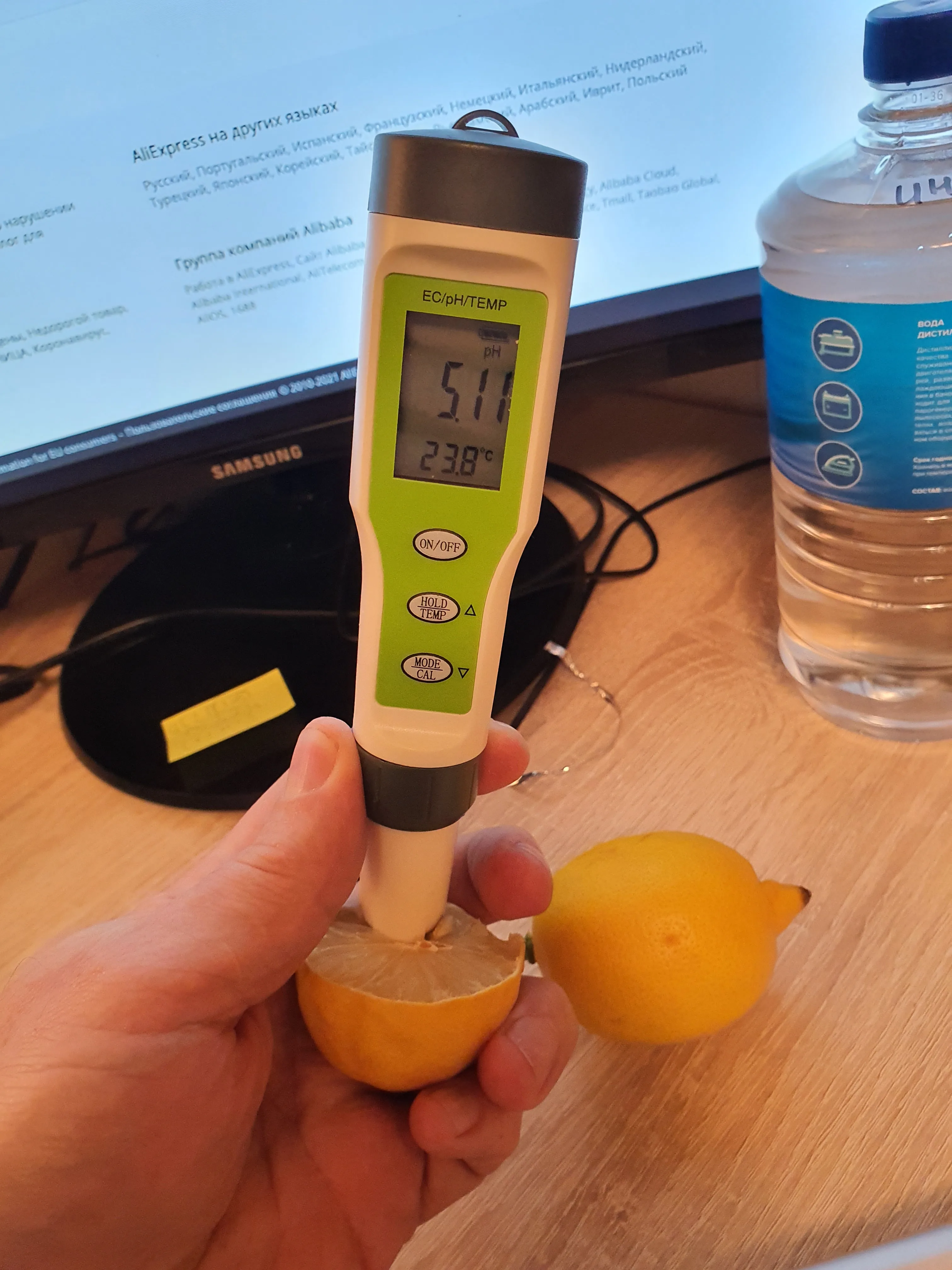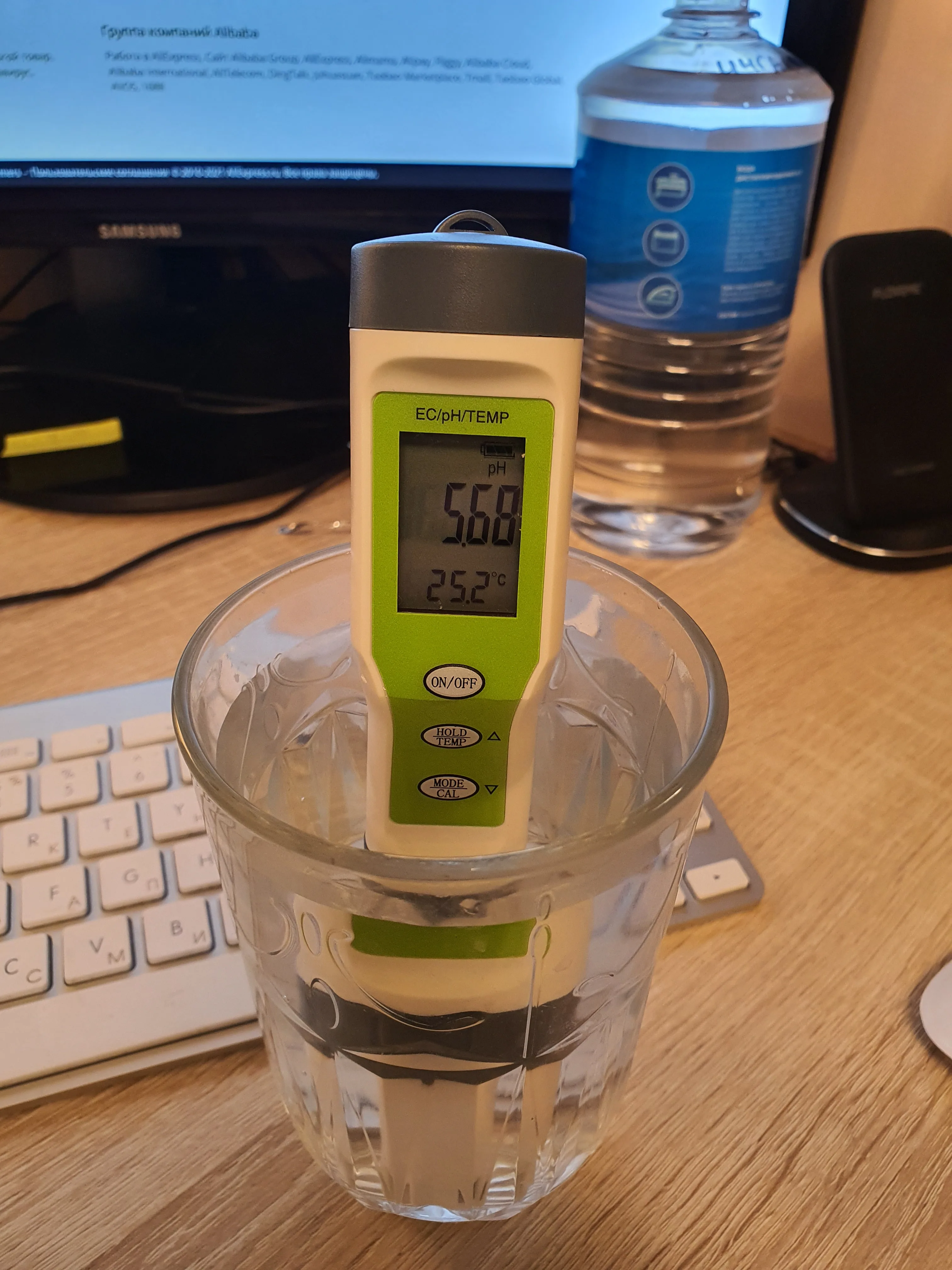 Пришел быстро, но к самому прибору есть вопросы... Ph измеряет достаточно точно, а вот с EC есть проблемы... Удалось откалибровать, но чем больше EC тем больше врет...