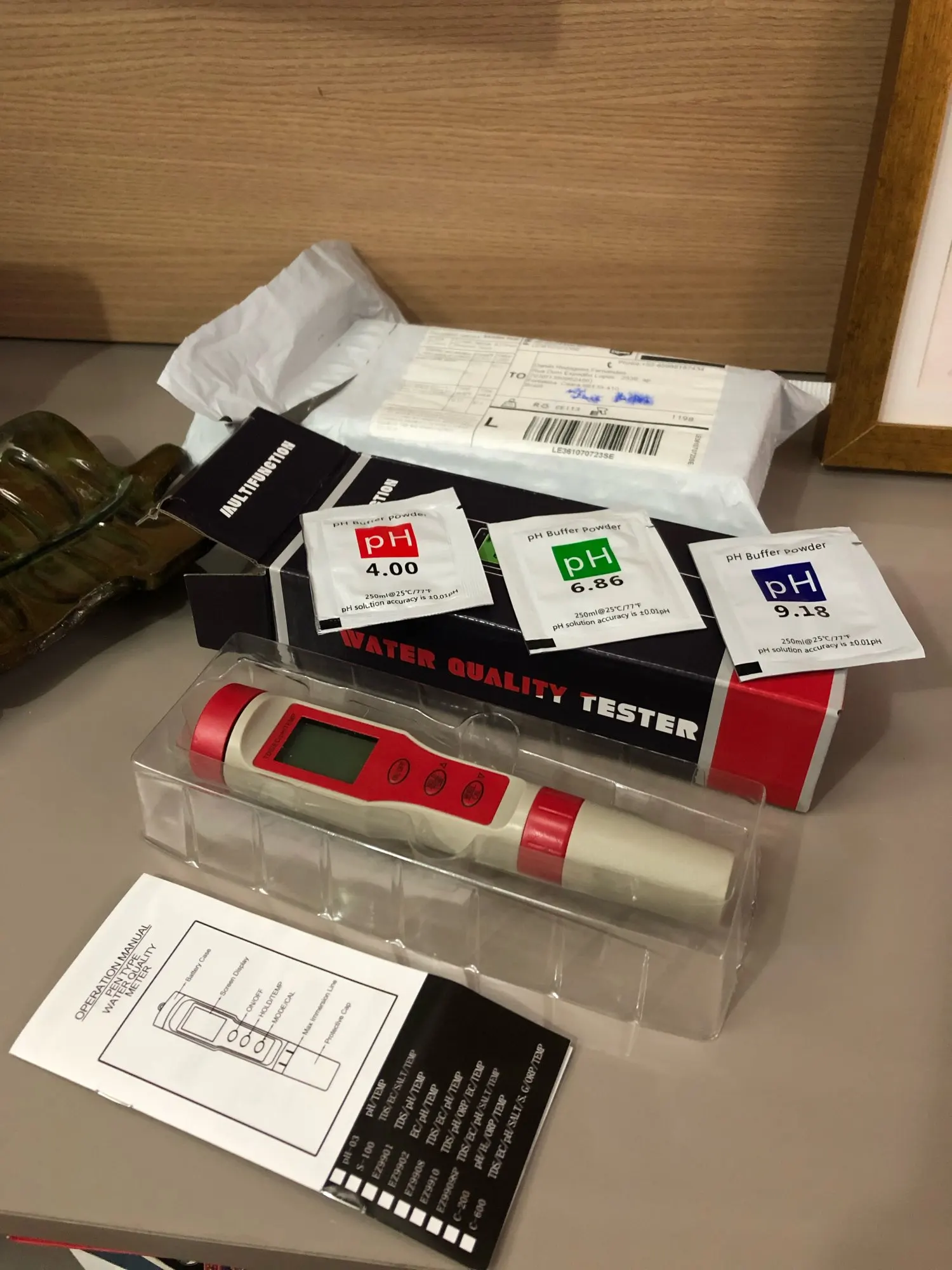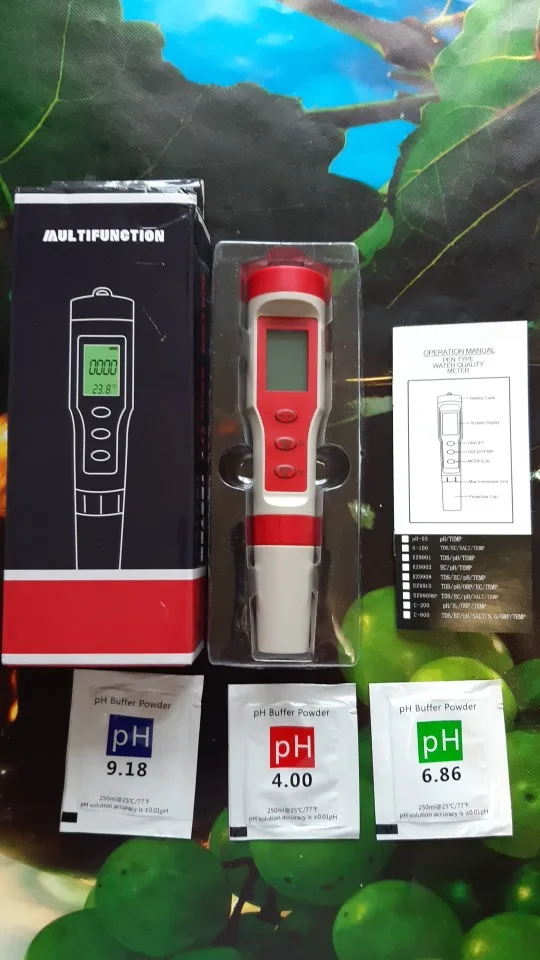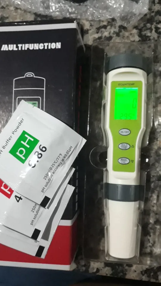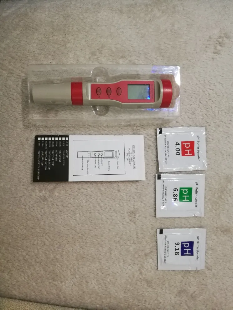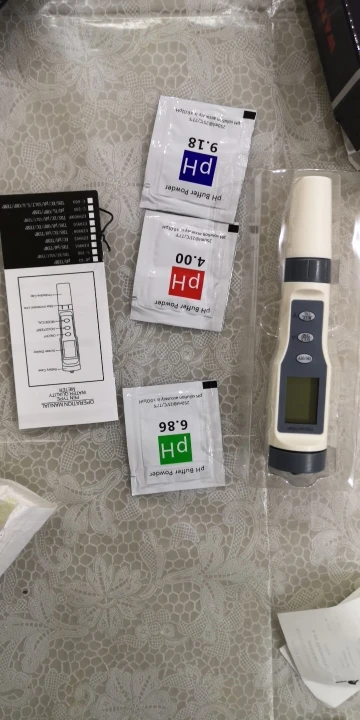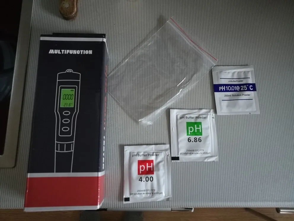 Доставка быстрая, прибор работает, в комплекте 3пакетика с порошком для раствора калибровки ph. Продавцу спасибо.