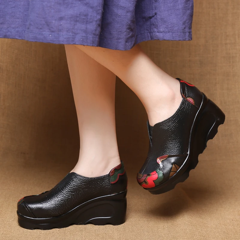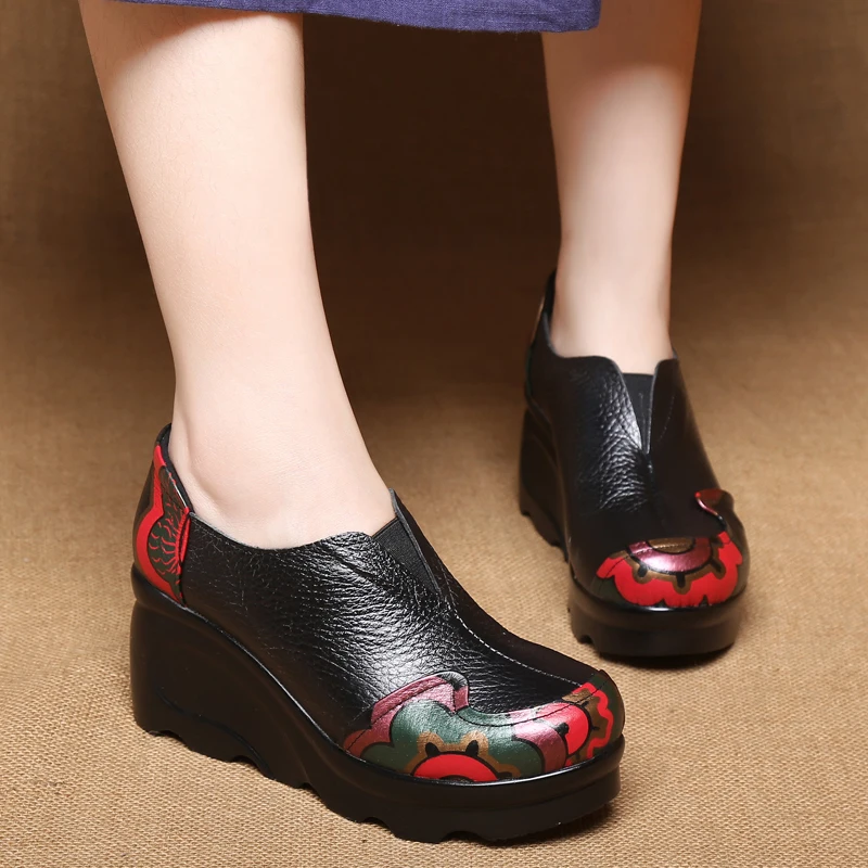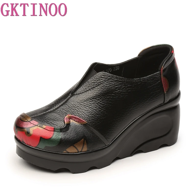 GKTINOOНовинка 2022 года; Обувь из натуральной кожи; Удобная женская обувь на высоком каблуке; Повседневная обувь на танкетке с толстой подошвой