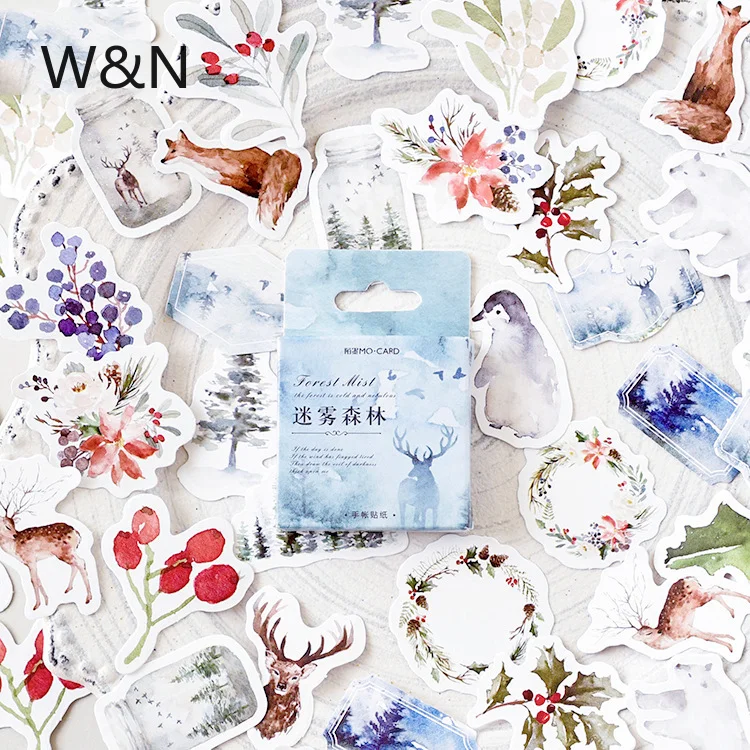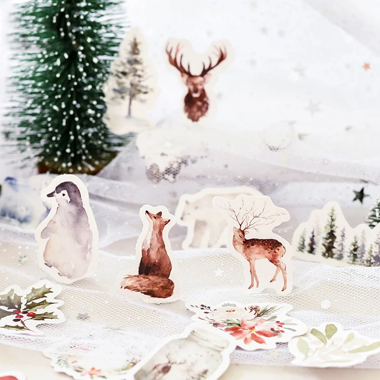 46 шт.коркор. зимние декоративные наклейки в виде леса, украшения сделай сам, Мультяшные наклейки, наклейки для дневника, скрапбукинга, кавайные канцелярские наклейки