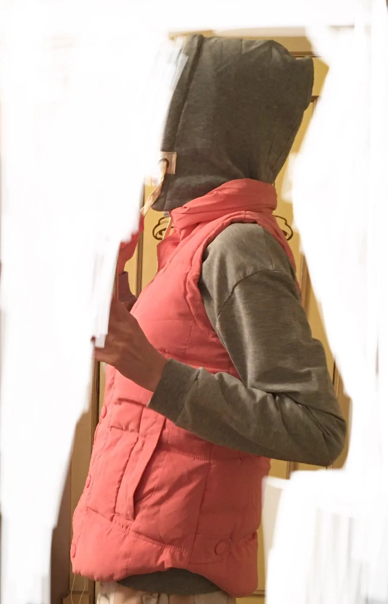 капюшон двуслойный, не тонкий. в карманы телефон не войдет, разве что мелочь, маска. Жилет можно носить на молнии и на пуговицы, это делает его больше на размер, что спасет если он окажется мал. на 48-50 российский размер подошел. Но на лиф с пушапом застегивается тяжело. В груди проходит до 3 размера, не больше.