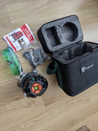 Доставка быстрая, 14.10. оплатила 22.10. забрала на почте, Пермский край. Комплектация соответствует описанию, работает, лазер зелёного цвета очень четко просматривается. Компактный, удобная сумка. Купила мужу в подарок, надеюсь будет доволен)