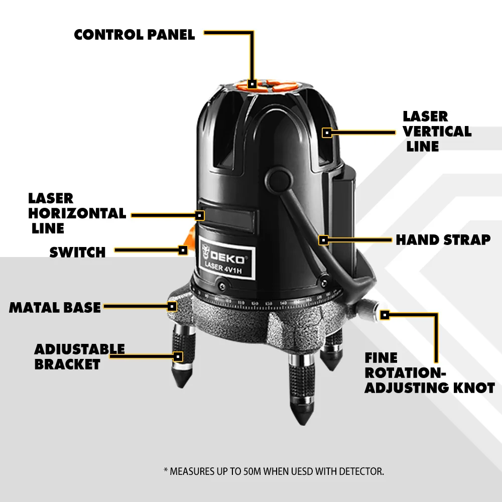 Лазерный уровень DEKO LL57LL58, зеленый самовыравнивающийся, 5 линий, 6 точек, горизонтальный и вертикальный зеленый лазер, регулировка на 360 градусов