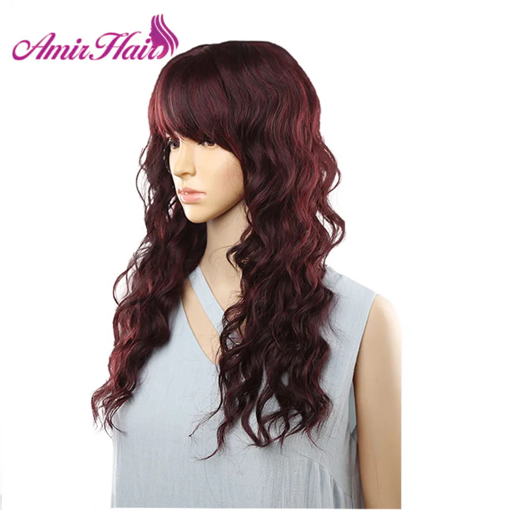 Парик Amir для женщин, длинные натуральные волнистые волосы, черный, коричневый, блонд с эффектом омбре, с челкой, парики из синтетических волос, для косплея и вечерние