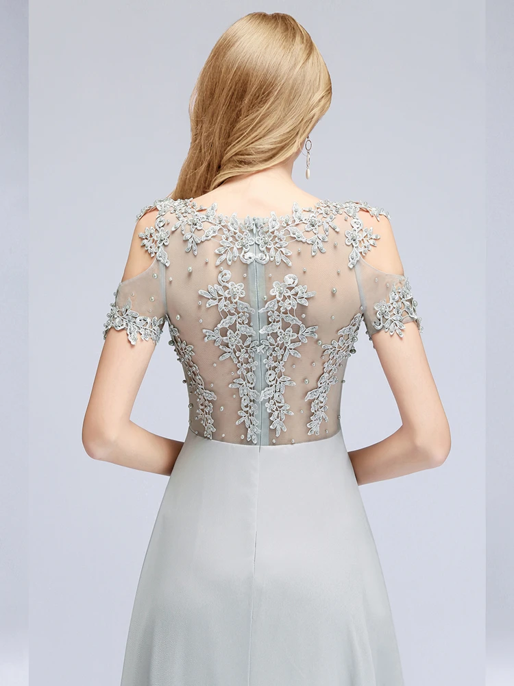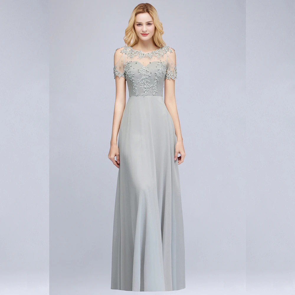 Распродажа Роскошные прозрачные вечерние платья с бисером серебристо-серого цвета длинное платье-трапеция для вечеринки шифоновое платье подарок на день рождения Женское Обручальное платье