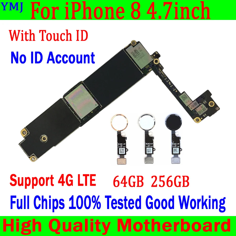 Нет идентификатор учетной записи 64 Гб 256 пластина для iphone 8 4,7 дюймов материнская плата с/без Touch ID всеми ЧИПАМИ логическая плата 100% протестированный отлично работающий