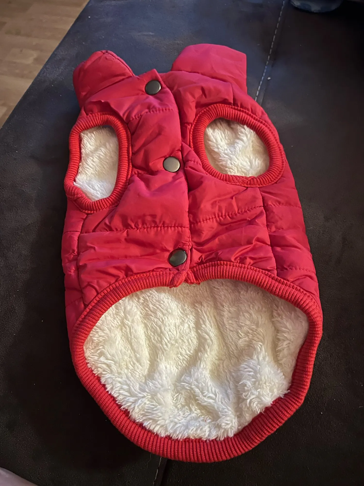 Очень хороший жилет, очень хорошо сшитый и очень теплый. Взял хз за Чихуахуа 2 кг. Размер идеально подходит.