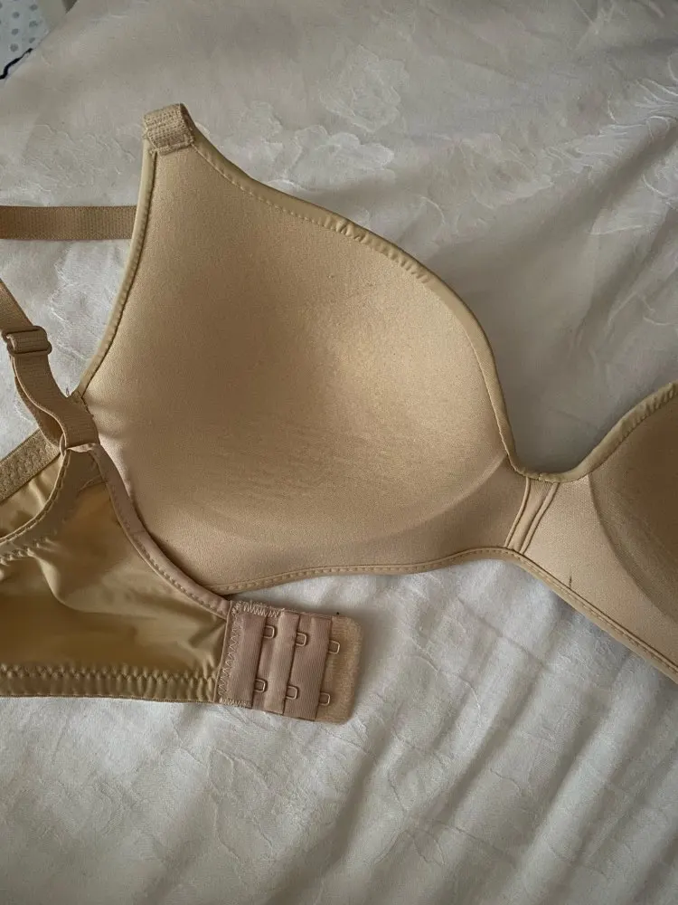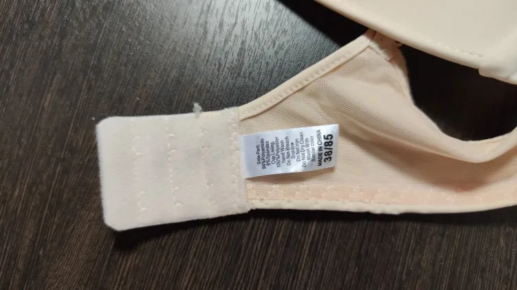 Бюстгальтер немного тонковат,совсем без пушапа.На небольшую грудь,иначе будет сильно сплющивать.Из плюсов он бесшовный,под одеждой не видно,брала специально под белую кофту,не на каждый день.На параметры под грудью 80,грудь 94,взяла 80В.Село идеально по параметрам,размерная сетка совпадает.И кстати цвет не классический бежевый,а больше в абрикосовый уходит,желтит сильно.