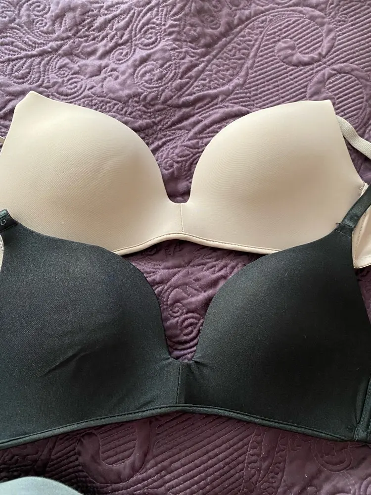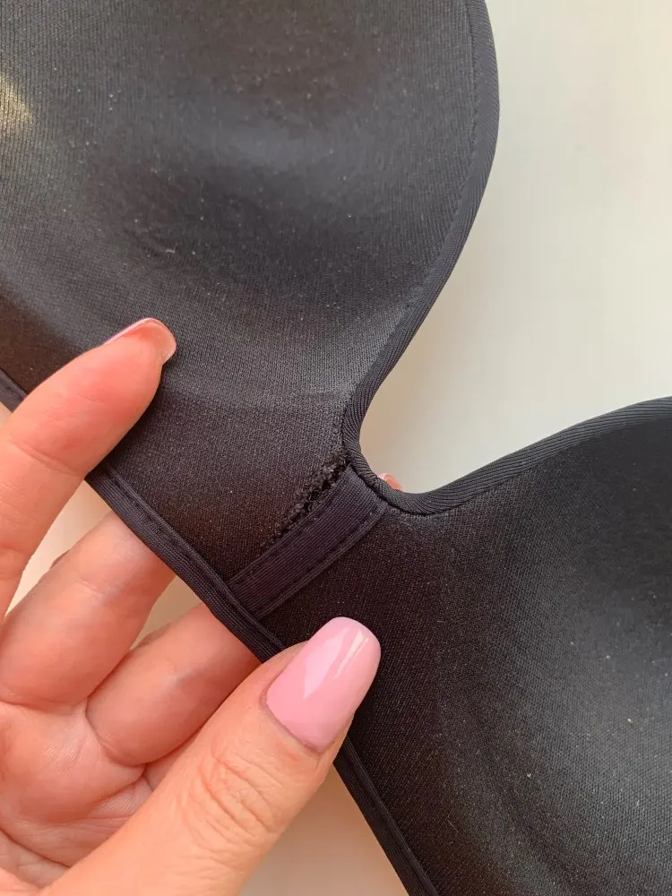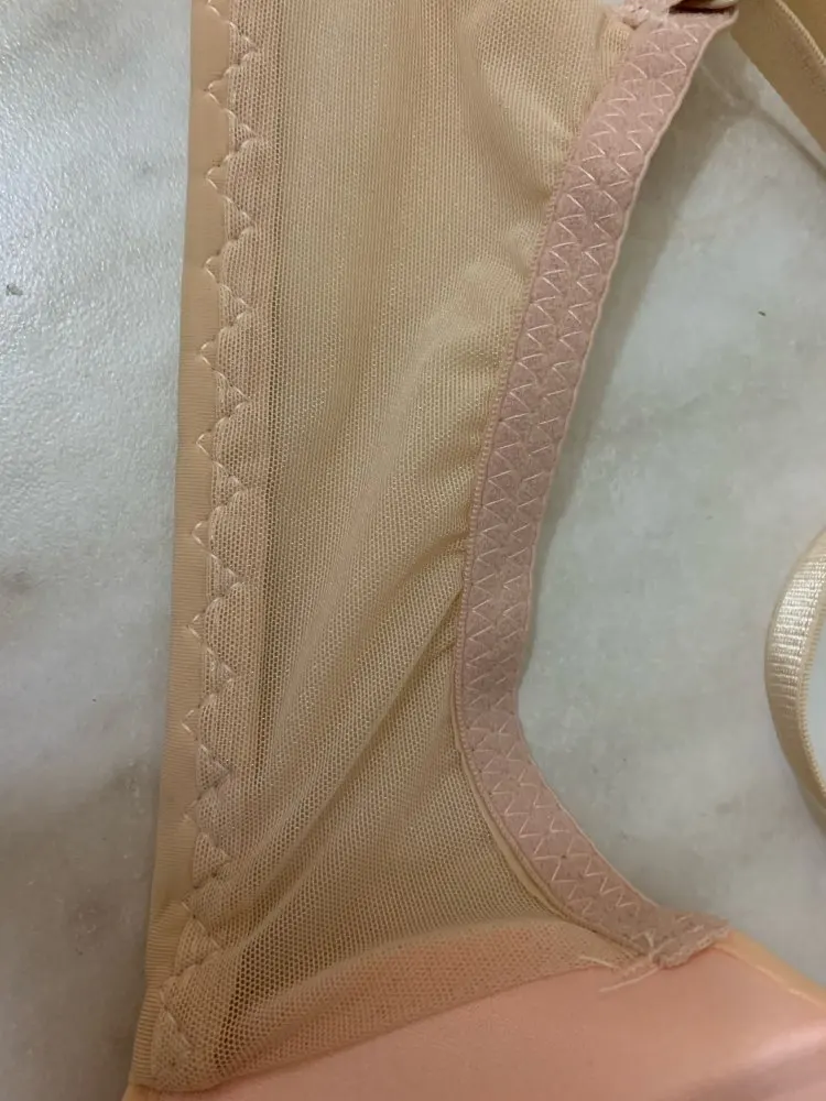 Заказываю второй раз. Первый был телесного цвета. За 300₽ он мне показался идеальным. Заказала чёрный и светло коричный (немного темнее телесного). Коричный один в один как телесный. А вот чёрный отличается, другая ткань и край не такой идеальный, чуть топорщится. Надеюсь видно на фото, о чем я говорю. И всё равно очень хороший за такую цену. На 91см обхват груди и 82см обхват подь грудью, купила 38/85.