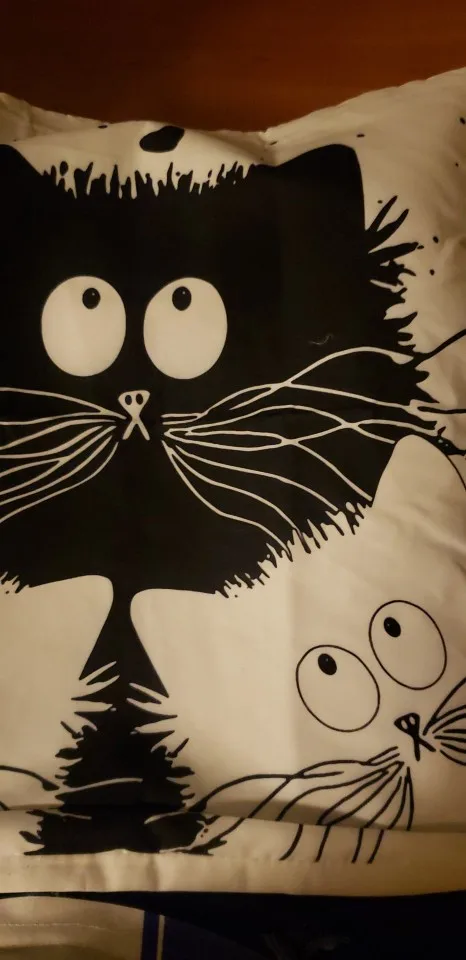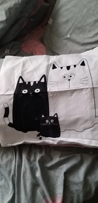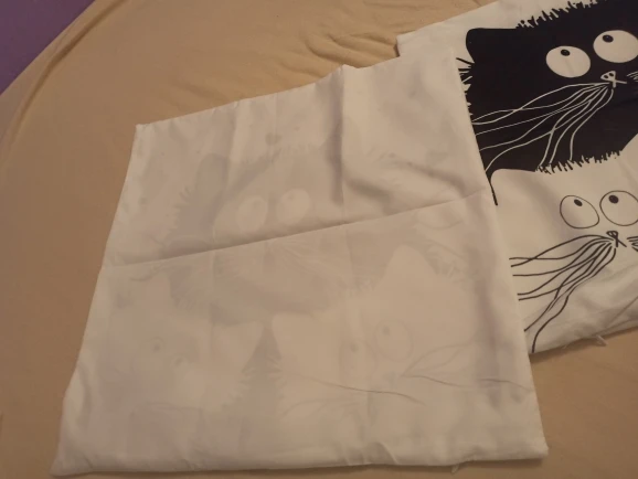 Отличная наволочка,правда,продавец перепутал рисунок кота,но я всеравно довольна,застёгивается на молнии,ткань тонкая,приятная к телу.Шла посылка в Португалию полтора месяца,рисунок четкий,с другой стороны наволочка белая,однозначно рекомендую и товар и честного продавца.