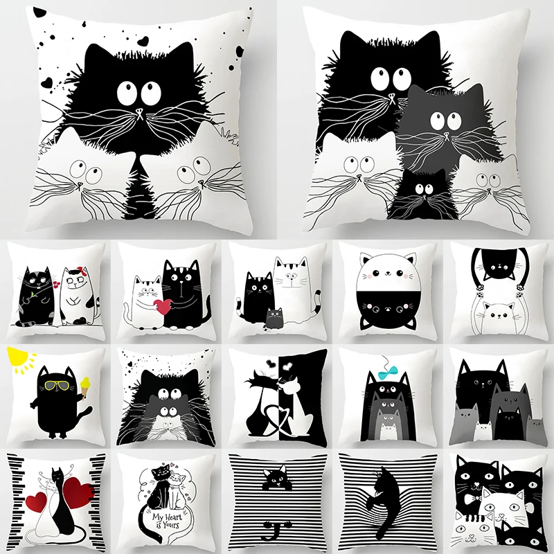 Забавный милый черный любовник наволочка с изображением кота наволочка 45*45 полиэстер наволочка для дивана автомобиля домашний Декор украшение комнаты 40889