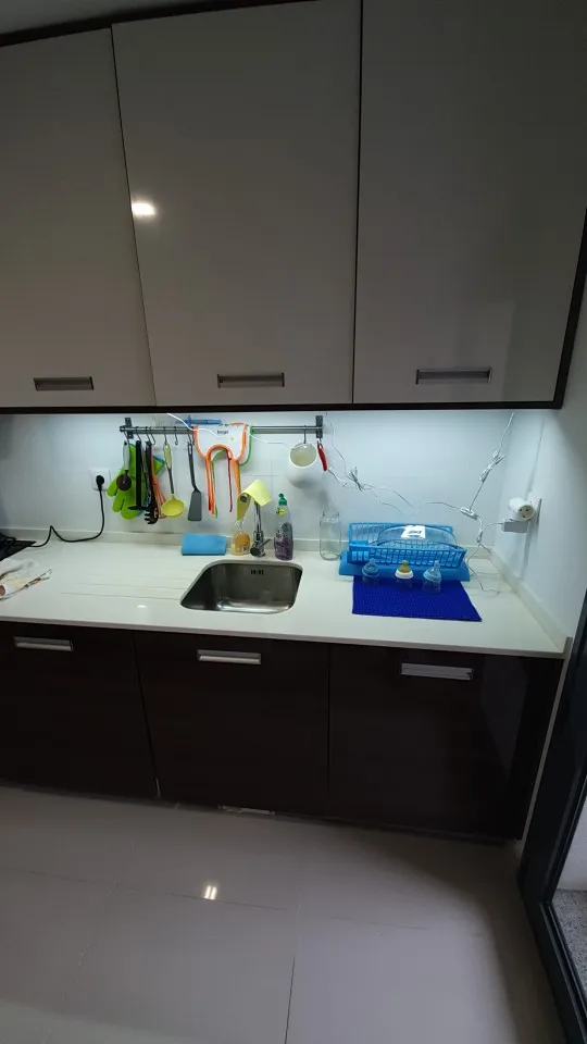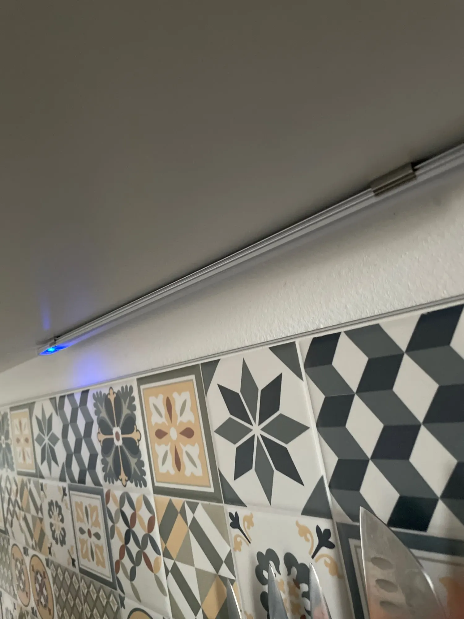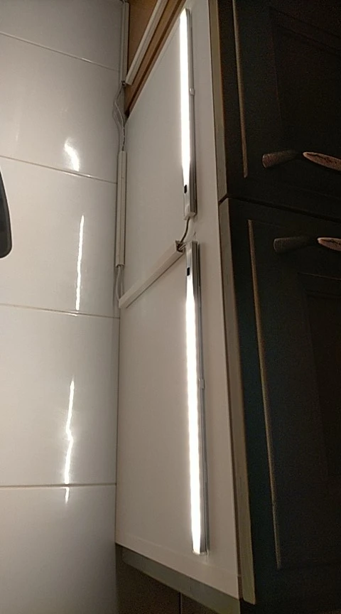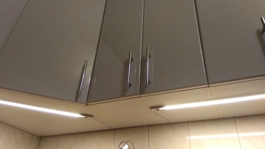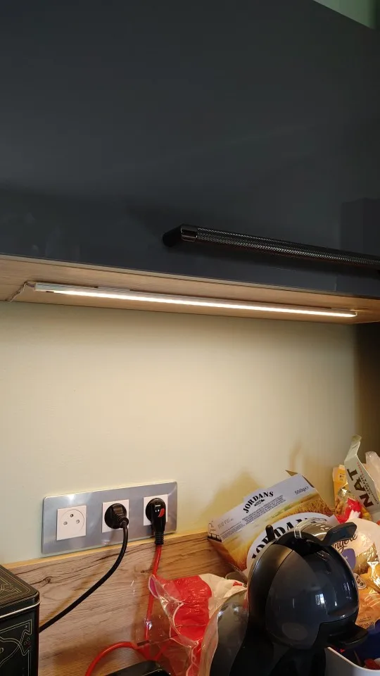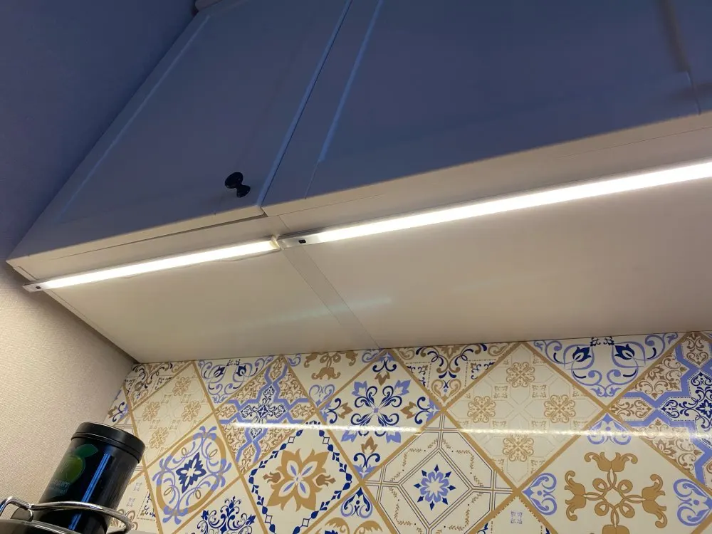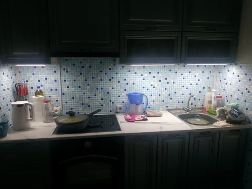 Хороший и удобный светильник. Уже второй раз заказываю, но для другой кухни. Но вот яркость синей подсветки датчика очень большая. А светодиод на блоке питания вообще надо убрать.