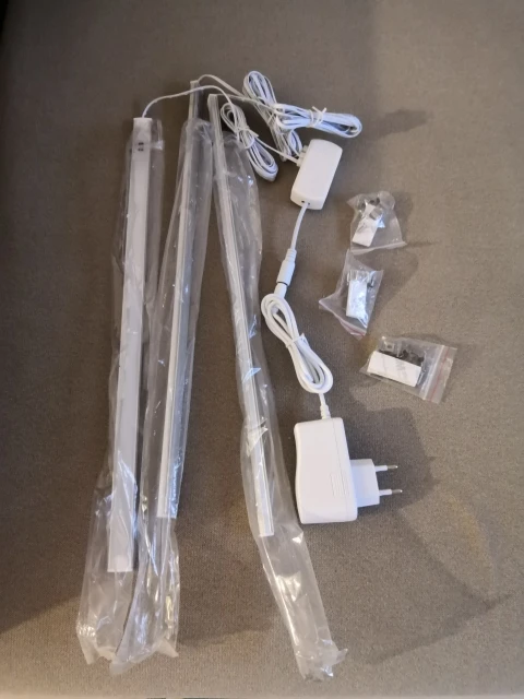 Все работает, в частности, переключение режимов свечения. Провод достаточно длинный. В комплекте 2 вида крепежа на каждый светильник: шурупами и клейкой лентой. Пока все огонь, надеюсь служить будет долго