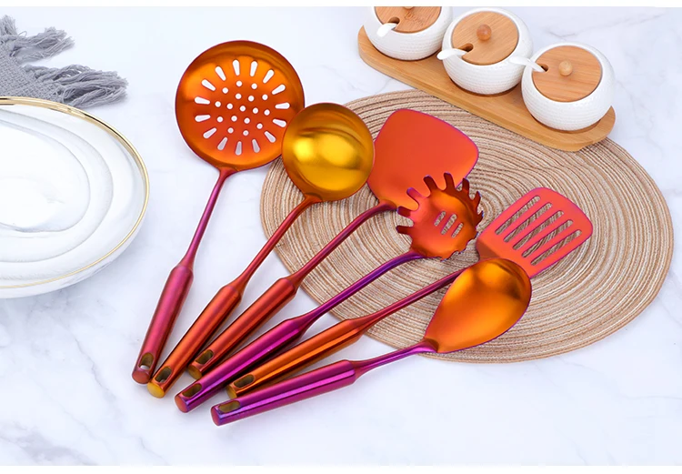 Набор из 7 ложек для приготовления пищи, лопатка из нержавеющей стали 304, ложка для супа с отверстиями, кухонная утварь, инструменты, Золотая кухонная утварь
