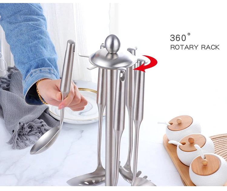 7 шт. кухонная посуда (Тернер, ковш для супа, скиммер, щелевой Тернер, рисовый сервер, спагетти, держатель для кухонной утвари) Дисплей набора инструментов для приготовления пищи