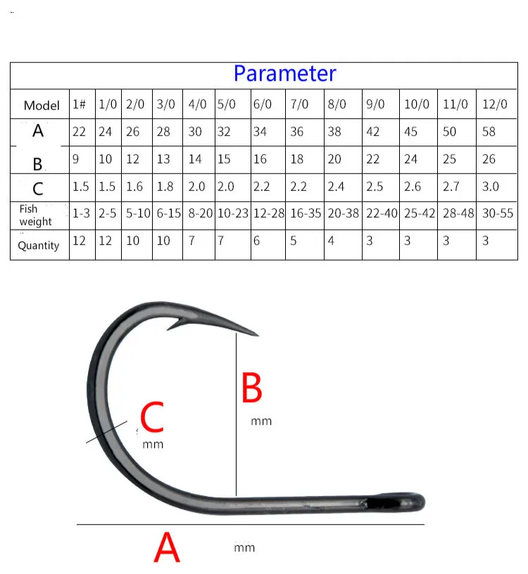 Hook size1# 1/0# 2/0# 3/0# 4/0# 5/0# 6/0# 7/0# 8/0#