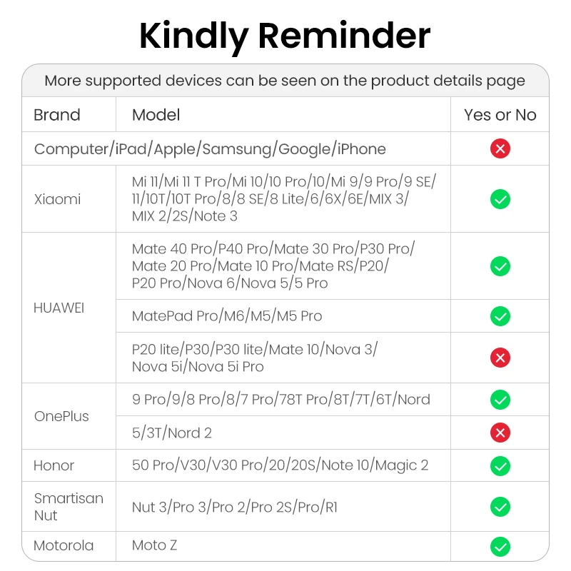 Всё супер! Отлично работает, но внимание, не на всех телефонах: Samsung Note 10 не поддерживается, Xiaomi Mi 9 SE - всё ок ) Качество как обычно на высоте. Люблю Ugreen)