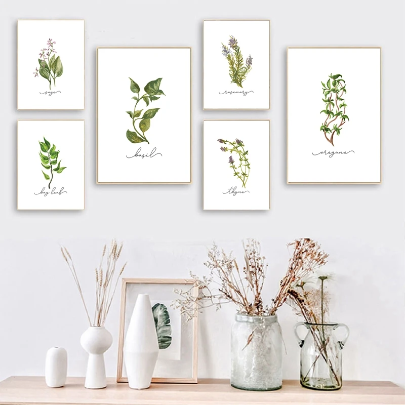 Травяная коллекция, настенные художественные плакаты на холсте, картина, орегано, шалфей, базилик, тимьян, Настенная картина с принтом, декор для кухни