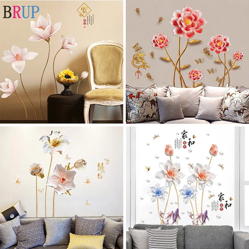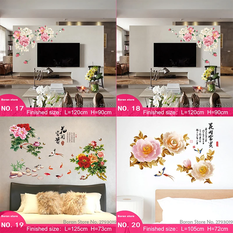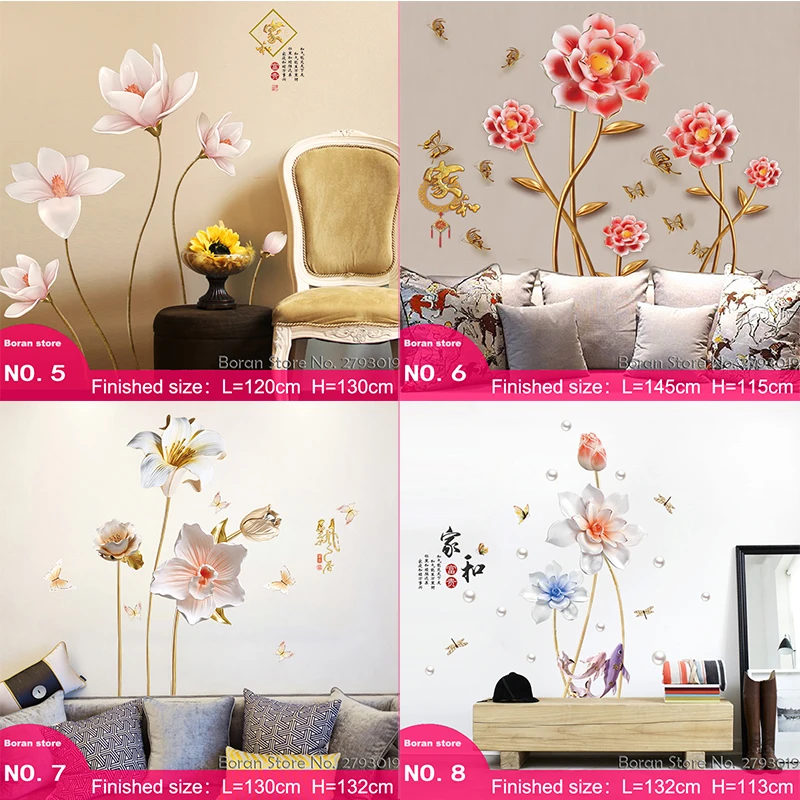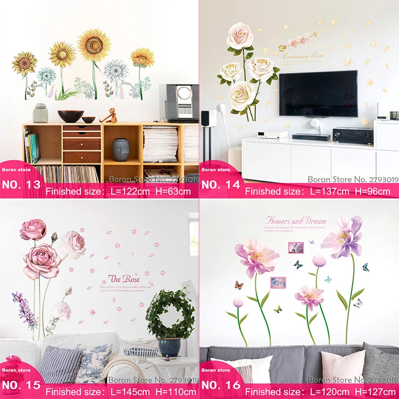 24 вида большие цветы наклейки на стену Спальня телевизор диван Романтические цветы домашний декор DIY роспись искусство наклейки на стену виниловые обои