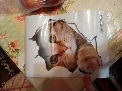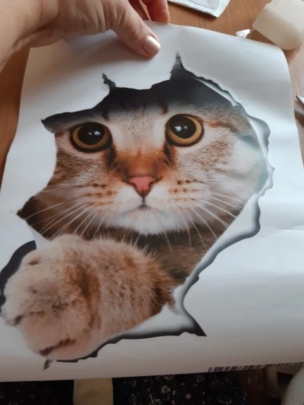 Заказ сделала 7.04.21 Получила 28.04.21г. Украина г.Сумы посылка пришла с остальными посылкамы на новую почту,Сама наклейка била без упаковки просто намотаная на рулон для того чтобы не помялась в дороге,клеялась очень не просто,постоянно попадал воздух оставляя небольшие пузырьки,картинка очень маленькая хотелось бы побольше,в описании пишут 25×23см.Но по факту высота кота 18см.Вообщем за такую цену не плохо,но не надолго,остаються царапины,от моющих средств линяет,береги не береги а всё равно повредиться.