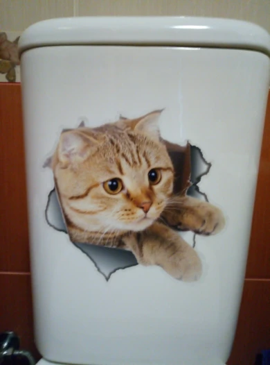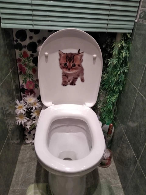 Кошки, 3D наклейки на стену, наклейки на унитаз, вид отверстий, яркие собаки, для ванной, для украшения дома, животные, виниловые художественные наклейки Наклейка, плакат