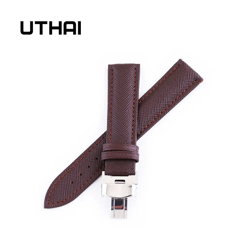UTHAI B02 часы черные Ремешки для наручных часов кожаный ремешок для часов 18 мм 20 мм 22 мм складная застежка браслет аксессуары для наручных часов