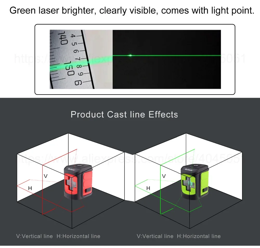 Зеленый лазерный луч в два раза ярче, чем красный лазер с одной и той же светильник источник света, более точные и четкие под солнцем, так и стабильный в внутреннего использования.