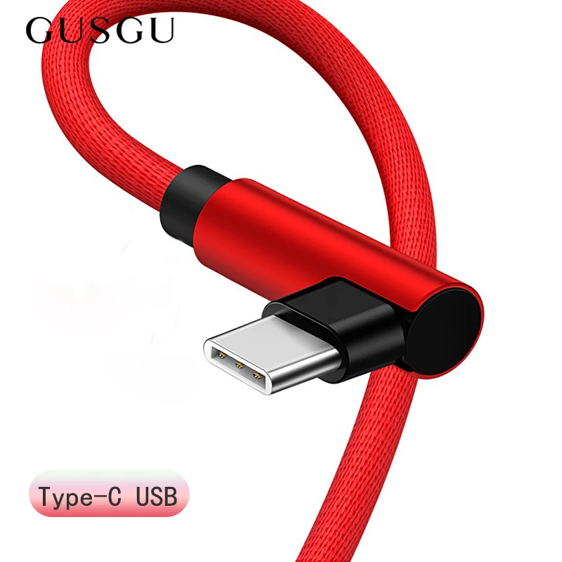 Кабель GUSGU USB Type C с углом 90 градусов для Samsung S8 S9, USB C, быстрое зарядное устройство для Huawei, Xiaomi Oneplus, кабель для зарядки и передачи данных