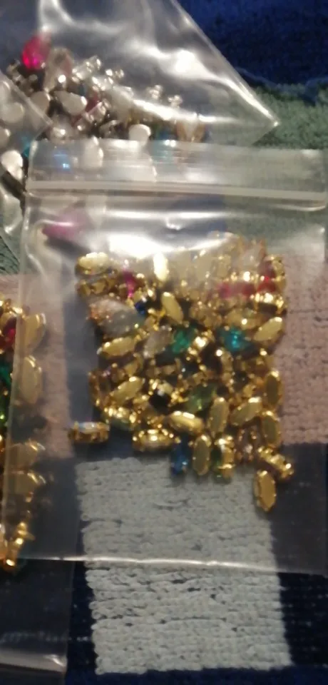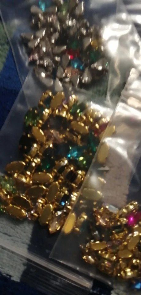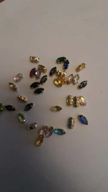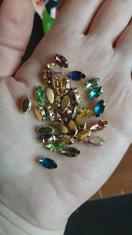 очень красивые стразы. яркие, аккуратные. В основном по 4 штуки каждого цвета, золотых и зеленых по 8 шт, а синяя одна.
