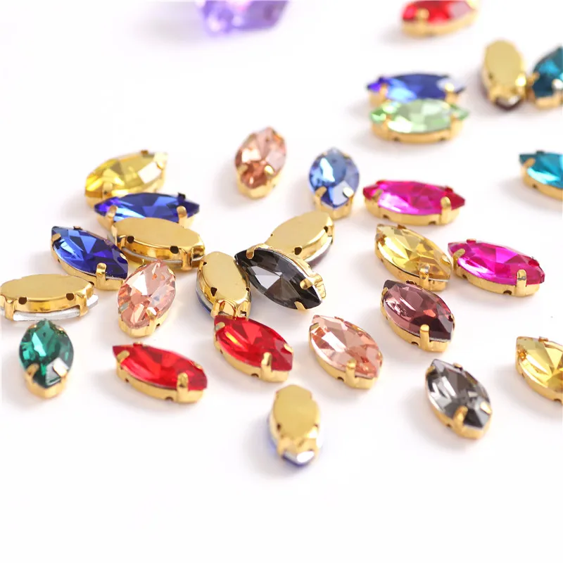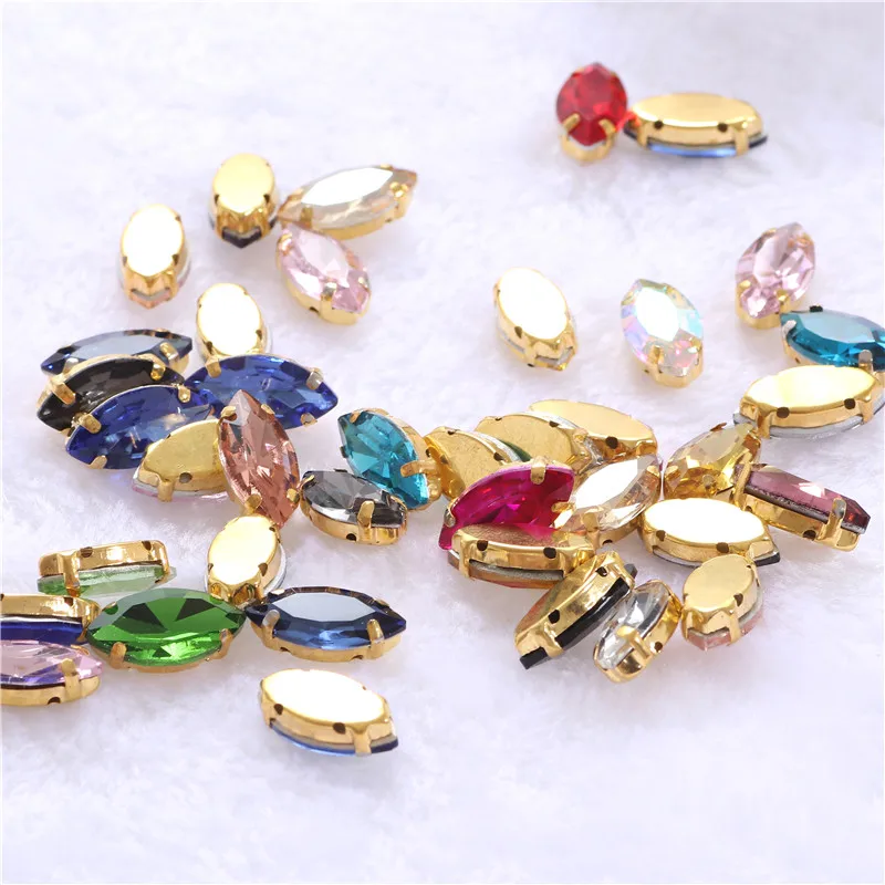 Конский глаз, разноцветные стразы для пришивания, с золотыми кристаллами