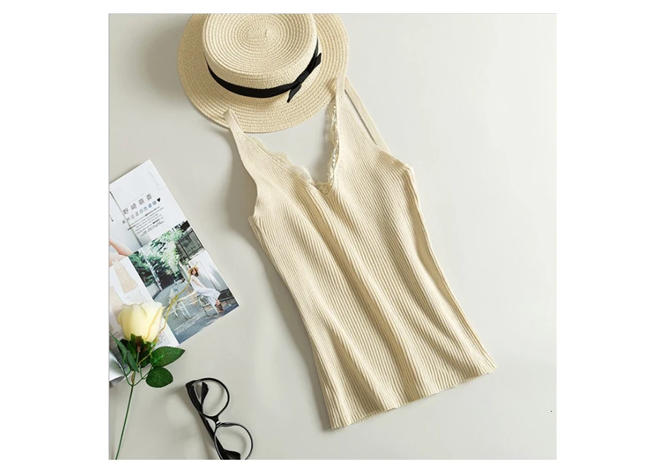 Майка женская трикотажная, с цветочным кружевом, сплошные швы, V-образным вырезом