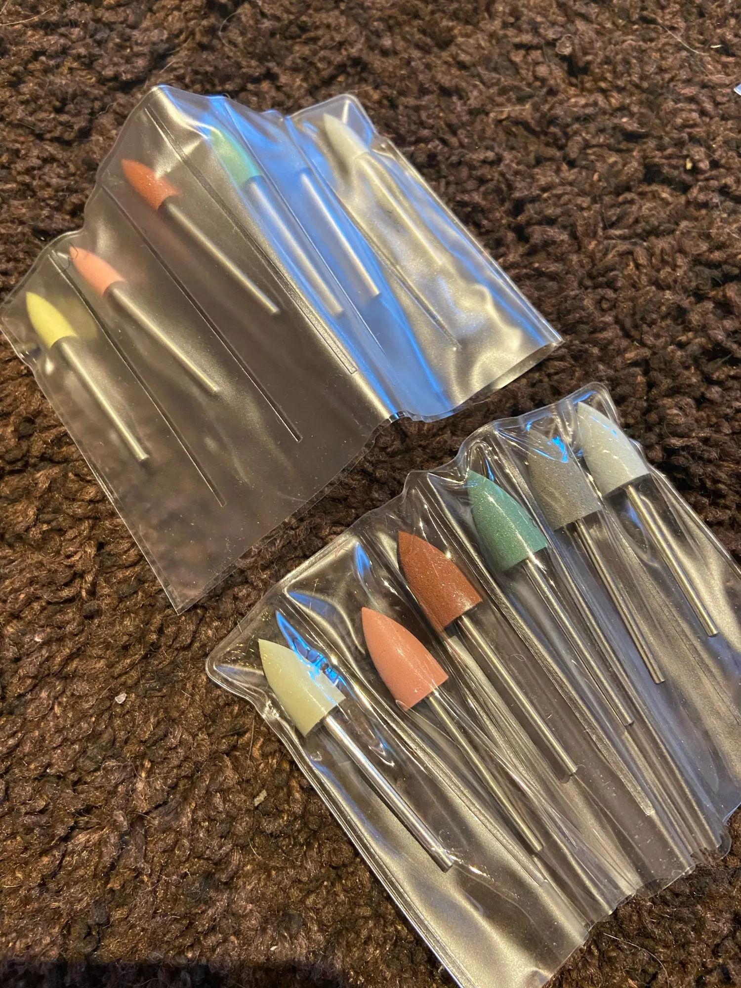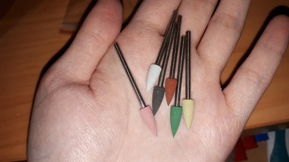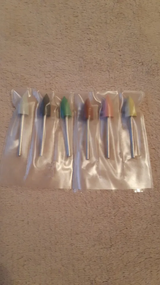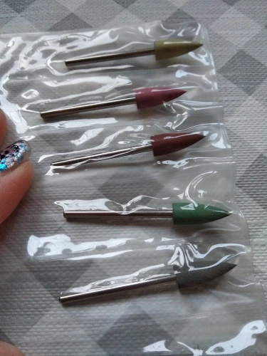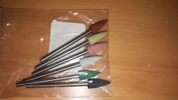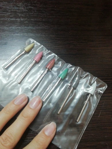 Отличные шлифовшики! Доставка до Саратова меньше месяца. Упакованы в пакет с пупыркой. Качество хорошее. Но для меня бесполезны, тот же эффект от корундовых фрез(брала набор разных форм на али) и разницы нет. Цена норм на 11.11 вышла. Я в принципе довольна. После одного использования деформировался носик у коричневой фрезы.