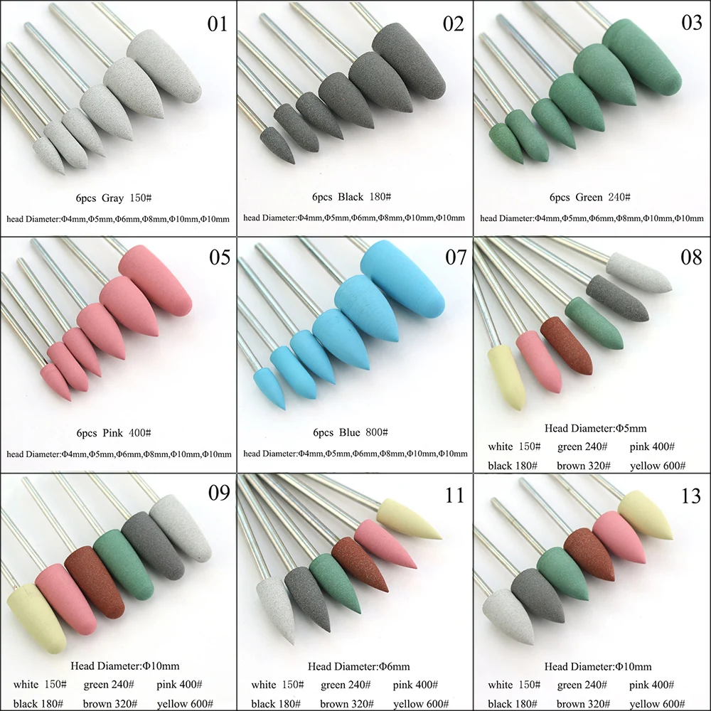 Фреза для ногтей ERUIKA, 6 шт.компл., Резиновая, Кремниевая, фреза для маникюра, гибкая машинка для полировки, электрическая пилка для ногтей, инструменты для дизайна