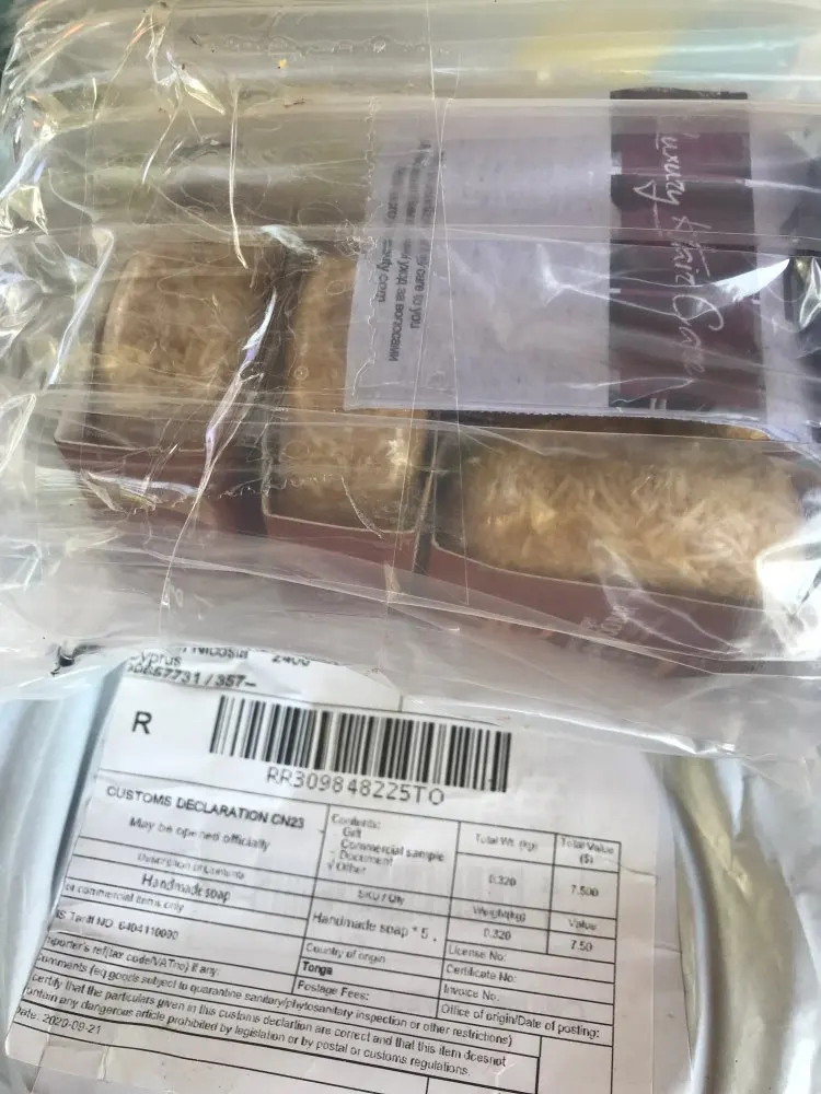 Доставка курьером 3 недели, мыло пахнет вкусно, будем пробовать.