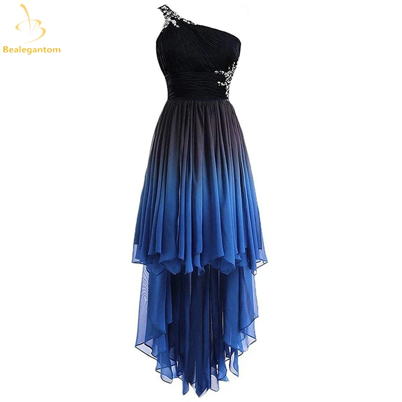 Женское платье на одно плечо, шифоновое короткое платье для выпускного вечера с эффектом омбре, расшитое бисером, для выпускного вечера, QA1565, 2021