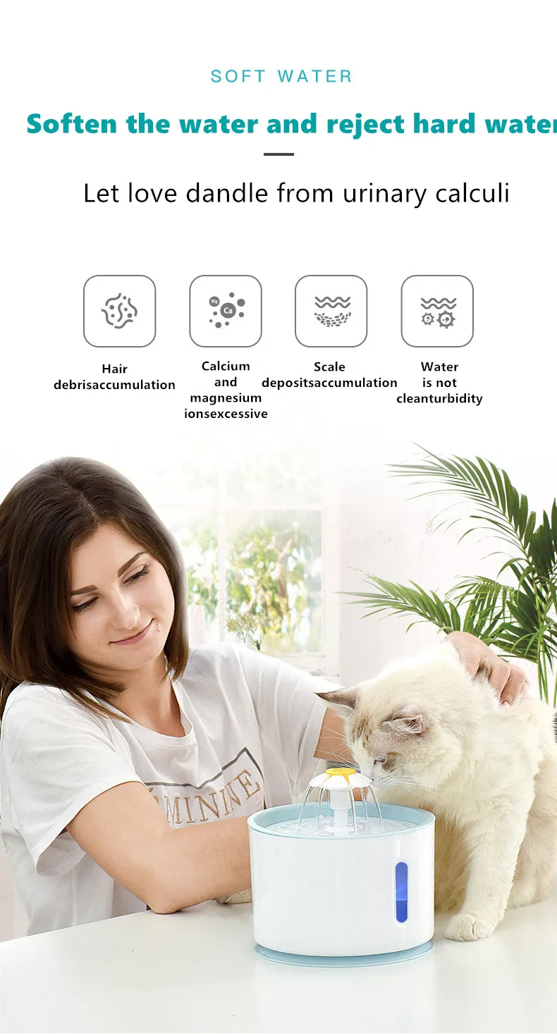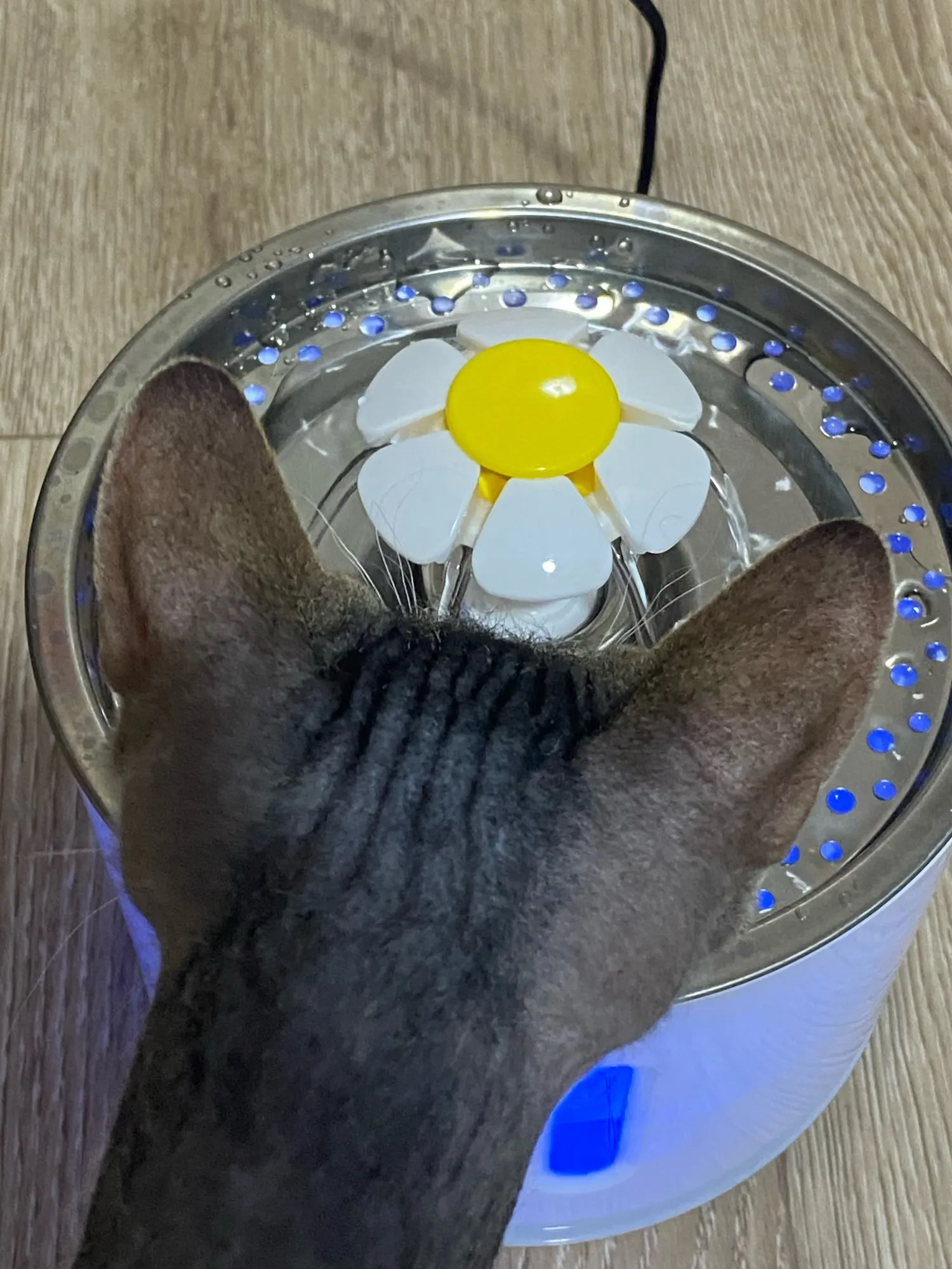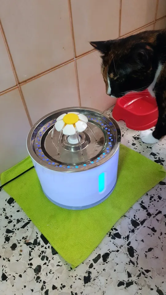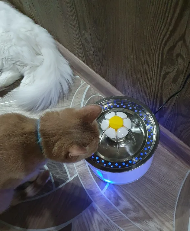 Отличная поилка, шнур достаточно длинный, кошки сперва не особо поняли, но я решила убрать ромашку сверху и вуаля! Муж сказал, что видел, как кошка пила) Кстати, я попробовала воду из поилки - вкусная, хоть сам пей)) И ещё доставка очень быстрая, всего несколько дней, я очень довольна!