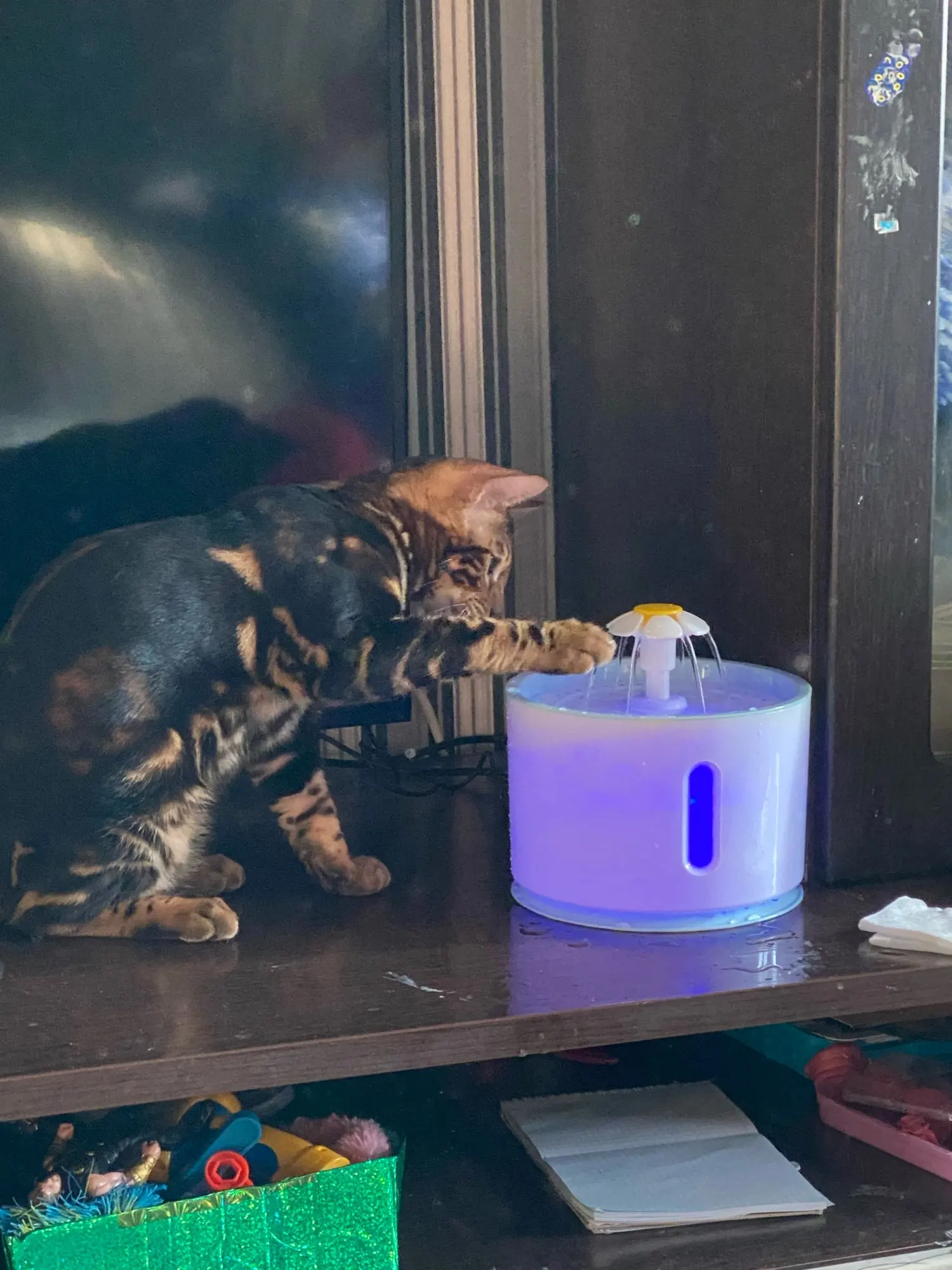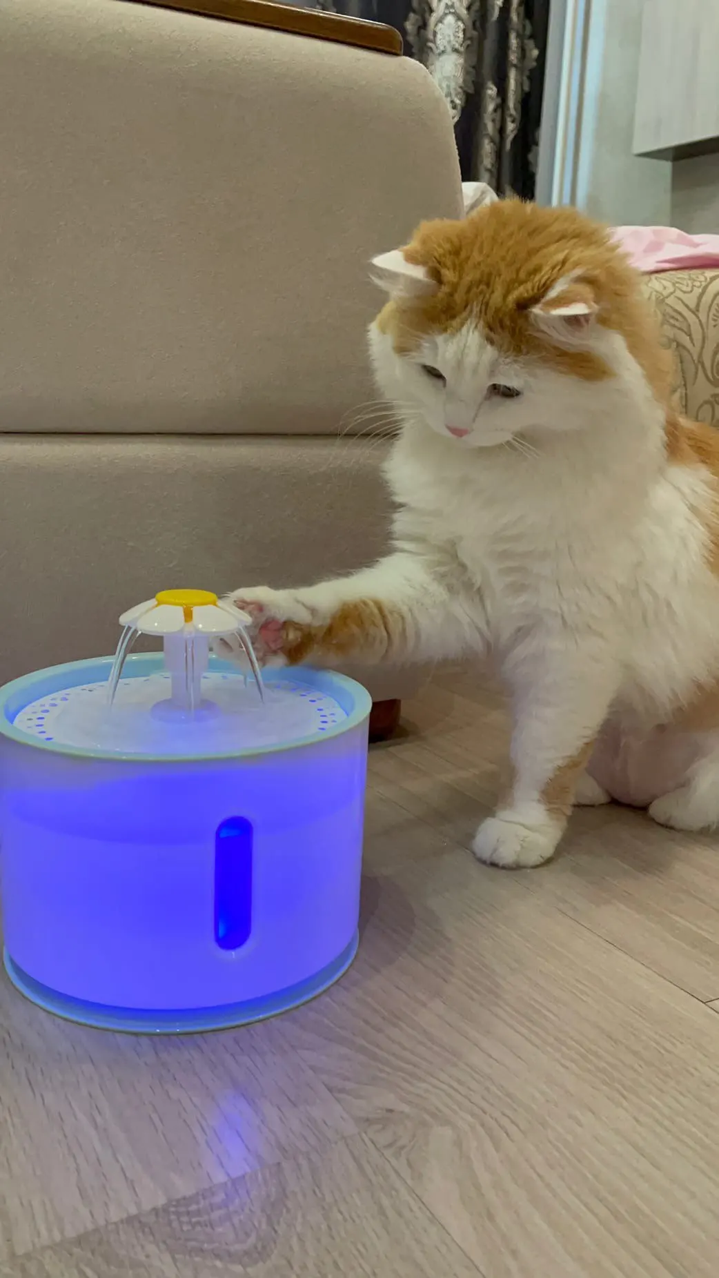 Кот в восторге, и лапкой струйкой играет и пьет с удовольствием. Отличная поилка!