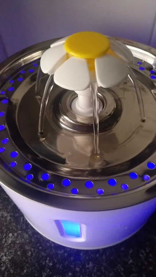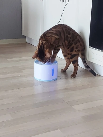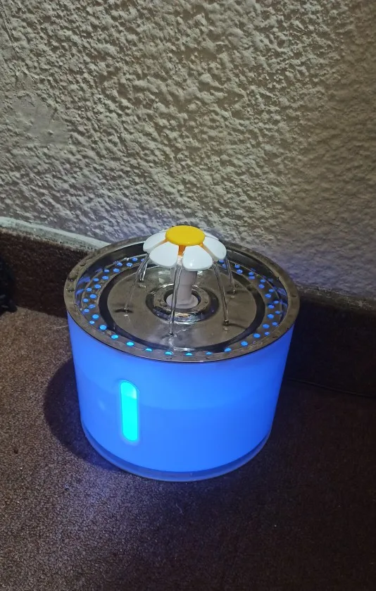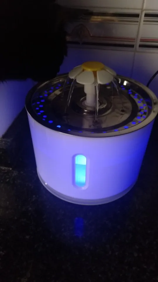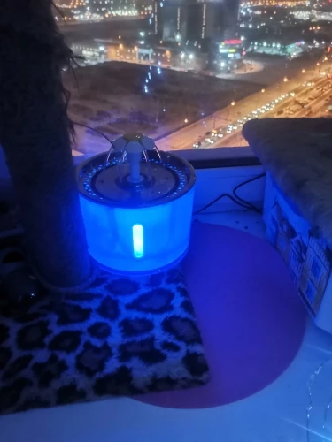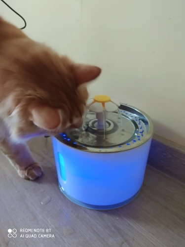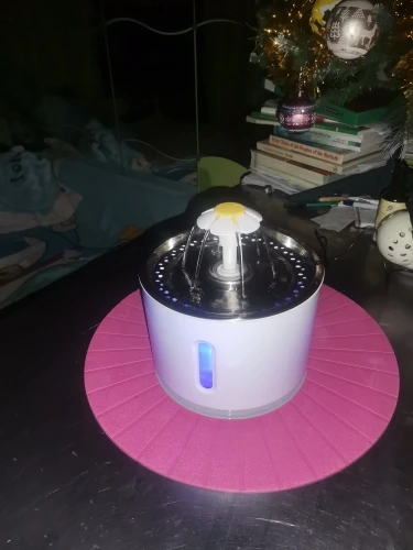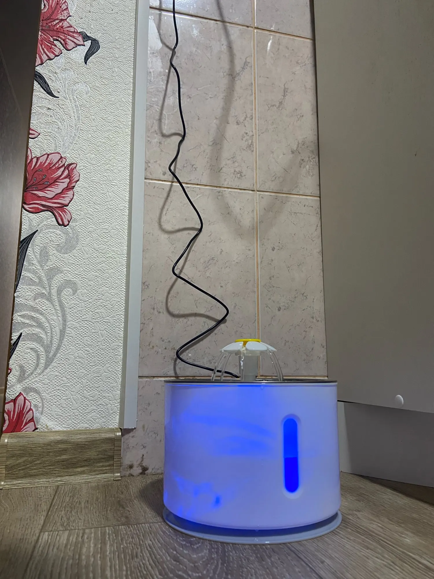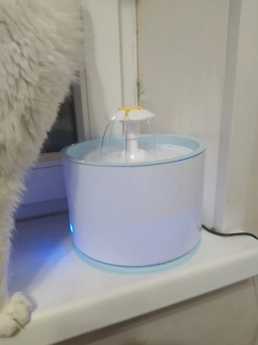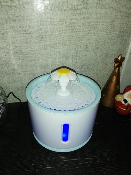Отличный фонтанчик! Быстрая доставка - за 3 дня! Курьер принёс на дом. Работает практически бесшумно. Красивая подсветка. Котик пьёт с удовольствием и больше не просит включать ему кран))