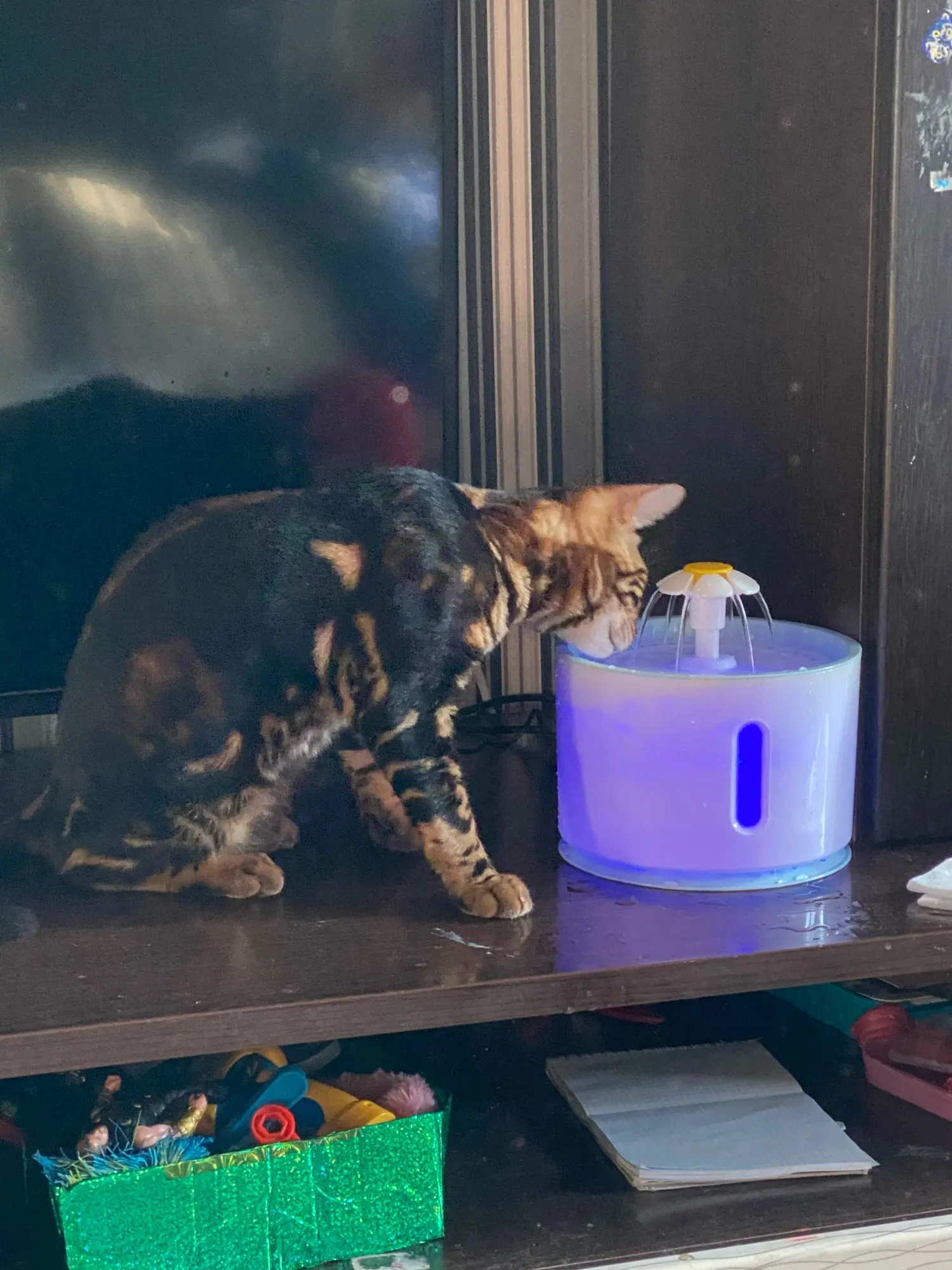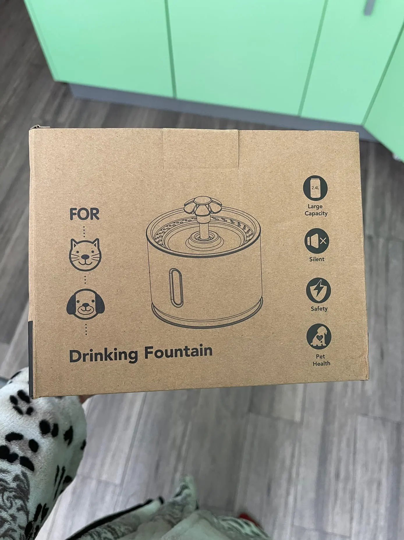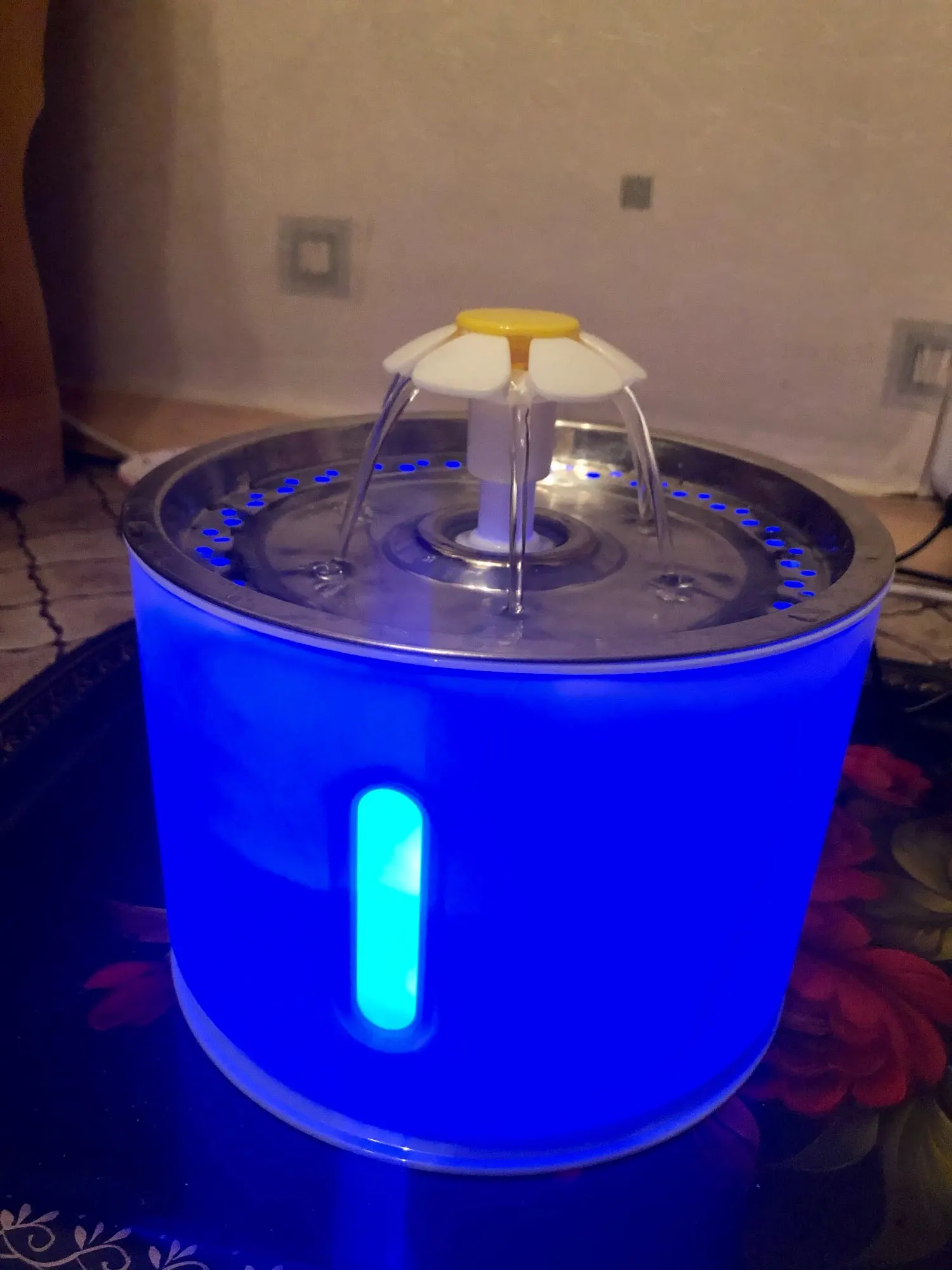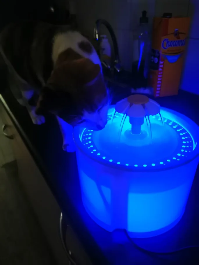 Отличный фонтанчик! Быстрая доставка - за 3 дня! Курьер принёс на дом. Работает практически бесшумно. Красивая подсветка. Котик пьёт с удовольствием и больше не просит включать ему кран))
