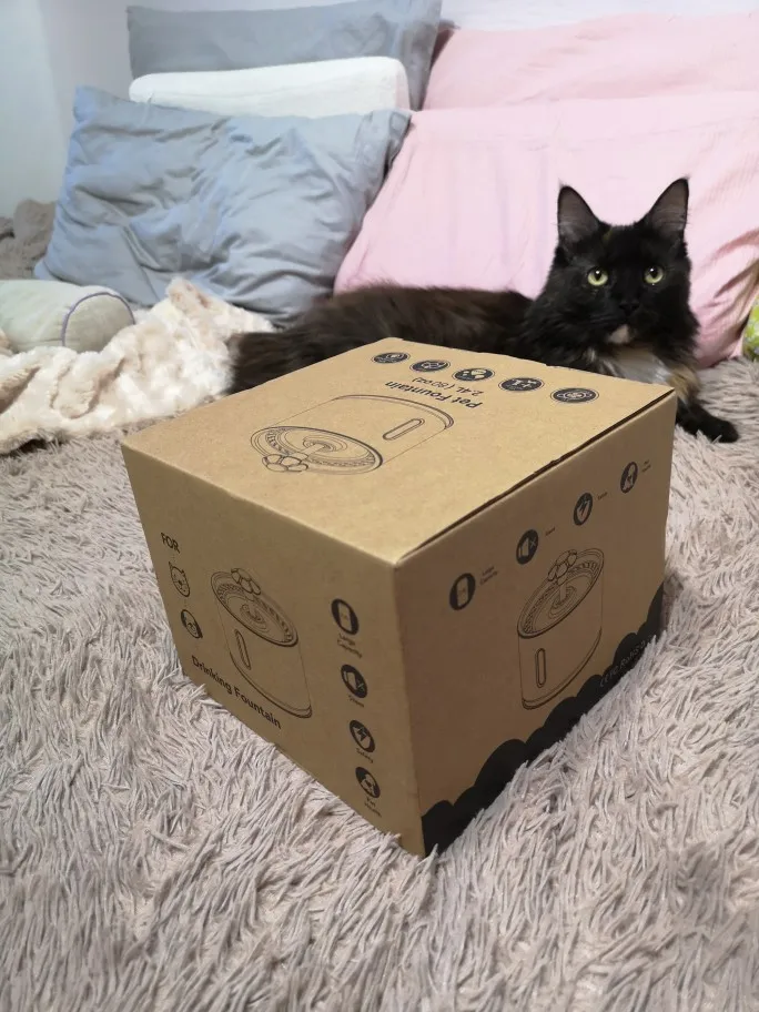 супер, коробка отличная, кошка в восторге. воду стала чаще пить, т.к. привлекает внимание. работает даже от внешнего аккумулятора.