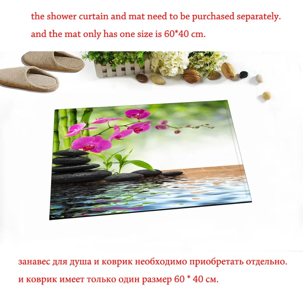 Занавеска для душа LB Spa, с ковриком, водостойкая, из полиэстера, с бамбук, Орхидея камнями, для ванны