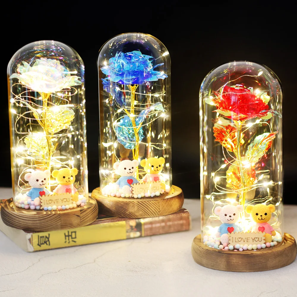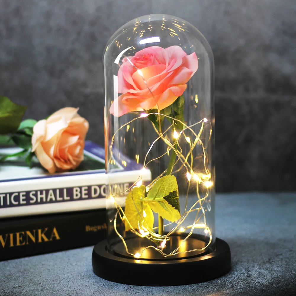 Искусственные цветы Красавица и Чудовище, розы в светодиодном стеклянном куполе, Рождественский домашний декор, подарок на свадьбу, День Святого Валентина, новый год