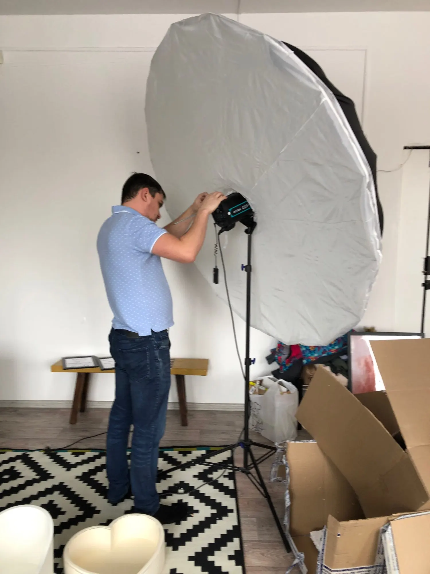 Очень классный и недорогой зонт. Использую его теперь постоянно в студии. И на локацию удобно брать. Очень им довольна! Доставили очень быстро и прям домой