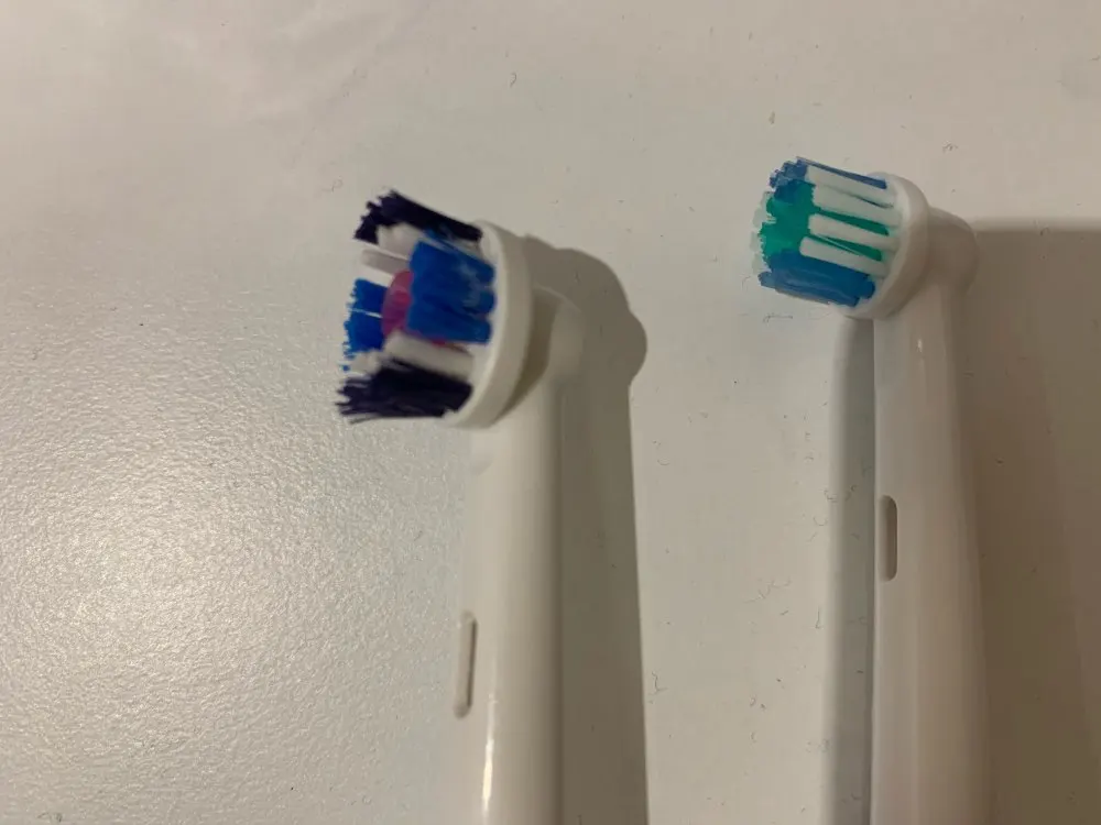 До этого я покупала насадку с другой щетиной, эта щетина понравилась меньше и мне показалась, что она меньше. А так состояние хорошее.