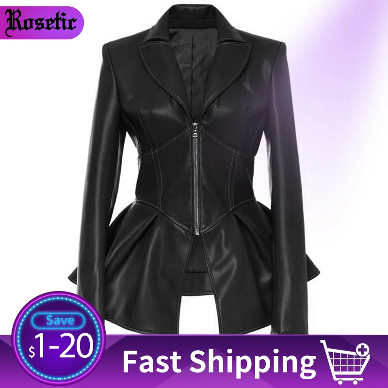 Женская куртка из искусственной кожи Rosetic, черная Готическая куртка из искусственной кожи, мотоциклетная куртка на зиму и весну, черные Куртки из искусственной кожи
